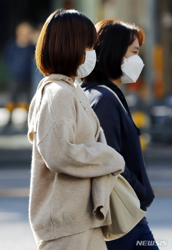 ソウルで最低気温が5度を記録し、初冬の寒さが訪れた21日、ソウル市内の繁華街・明洞では、厚着をした観光客たちが通りを歩く姿が見られた。