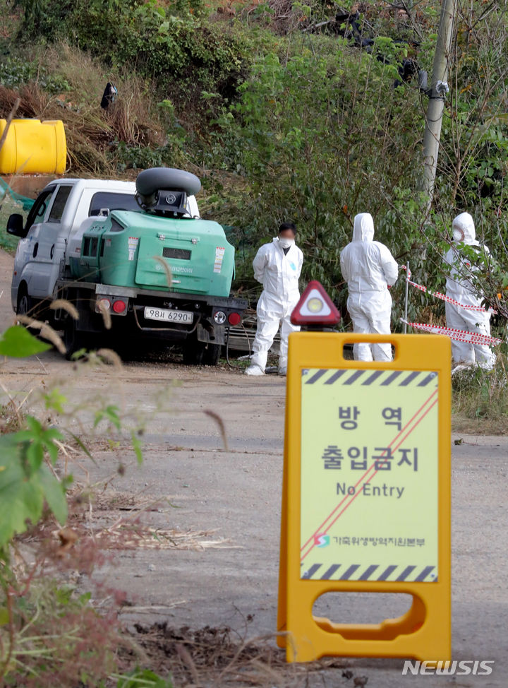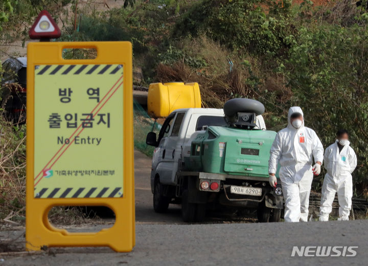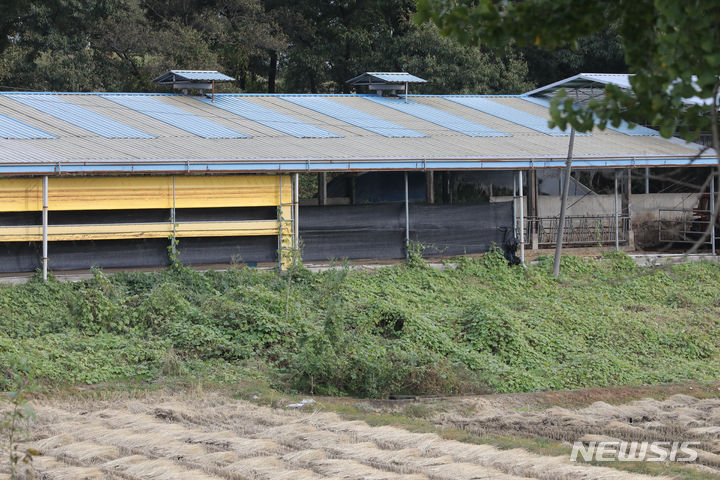 【NEWSIS】22日午後、牛のウイルス性感染症「ランピースキン病」が発生した京畿道平沢市内の乳牛農家。関係者が立入を規制している。