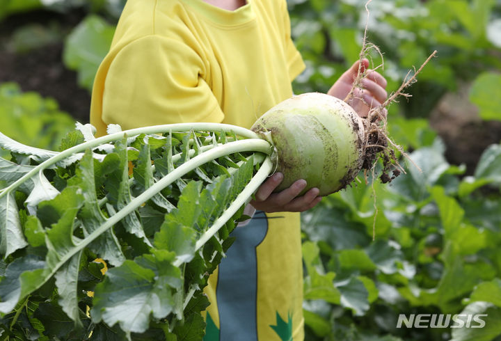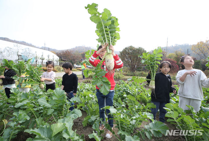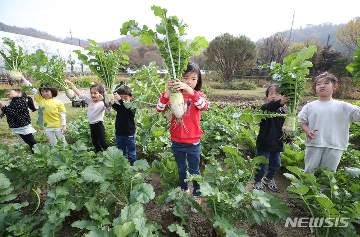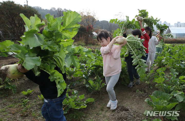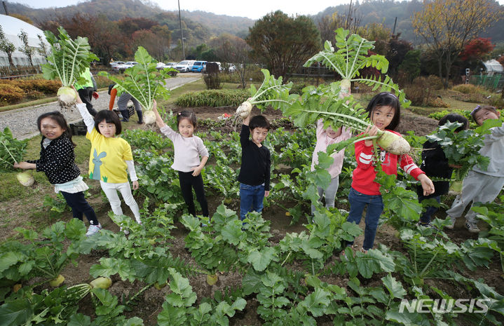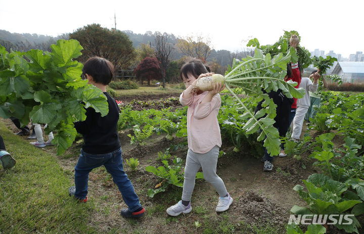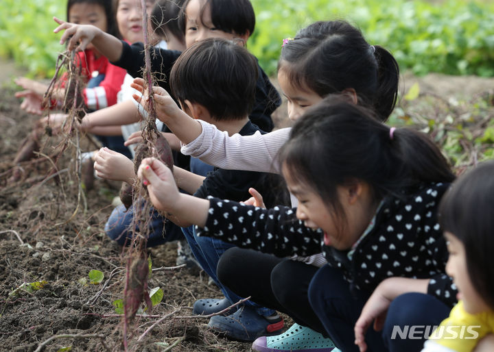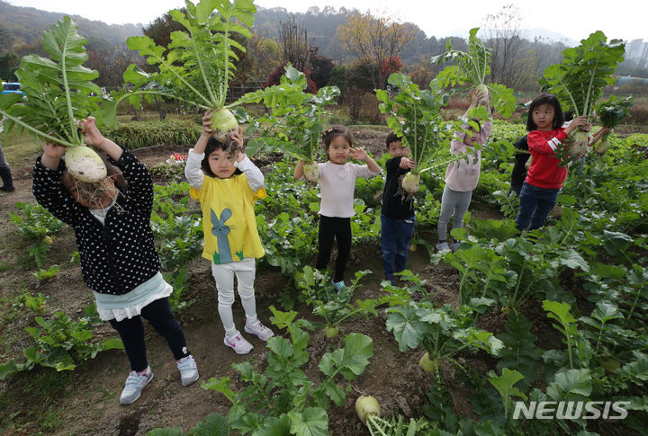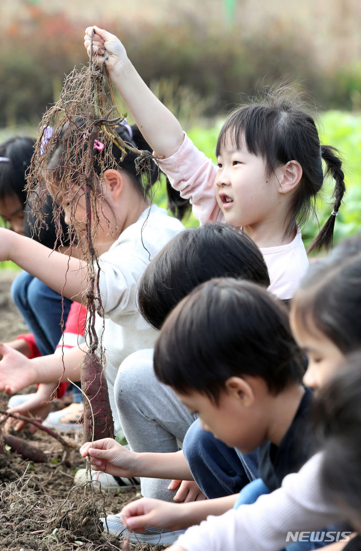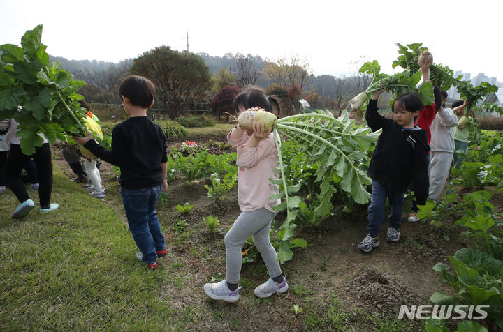 ソウル市内のコッチョロン自然学習場で31日、瑞草区庁主管により「ちびっこ農民とともに行う秋の作物収穫体験」イベントが開催され、地域の保育園に通う園児たちが作物収穫体験を楽しんだ。