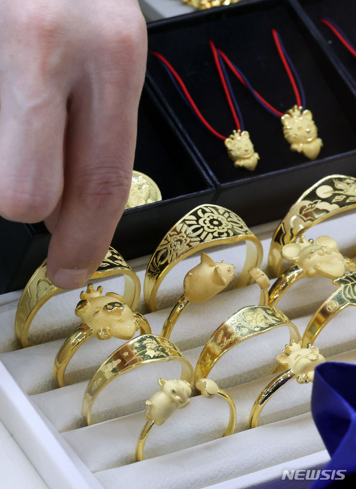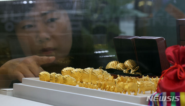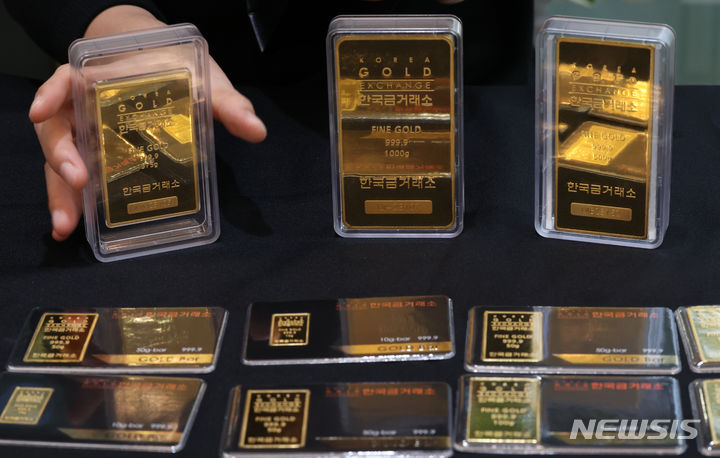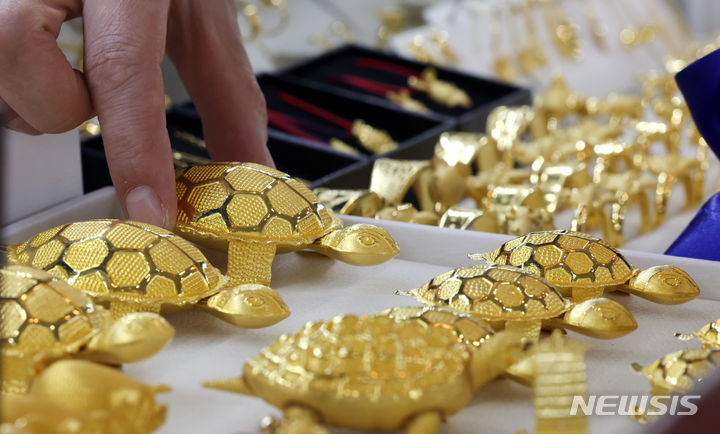 戦争の余波で再び金価格の上昇傾向が続いている。月間基準の国際金価格は、先月8.19%上昇し、3月(8.86%)以来最も高い伸び率を記録した。10月30日にシンガポール取引所では、現物基準の金価格が一時、1オンスあたり2006.83ドル(現在のレートで約30万4200円)で取引された。写真は1日午後、ソウル市鍾路区の韓国金取引所に陳列された金製品の様子。