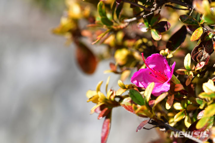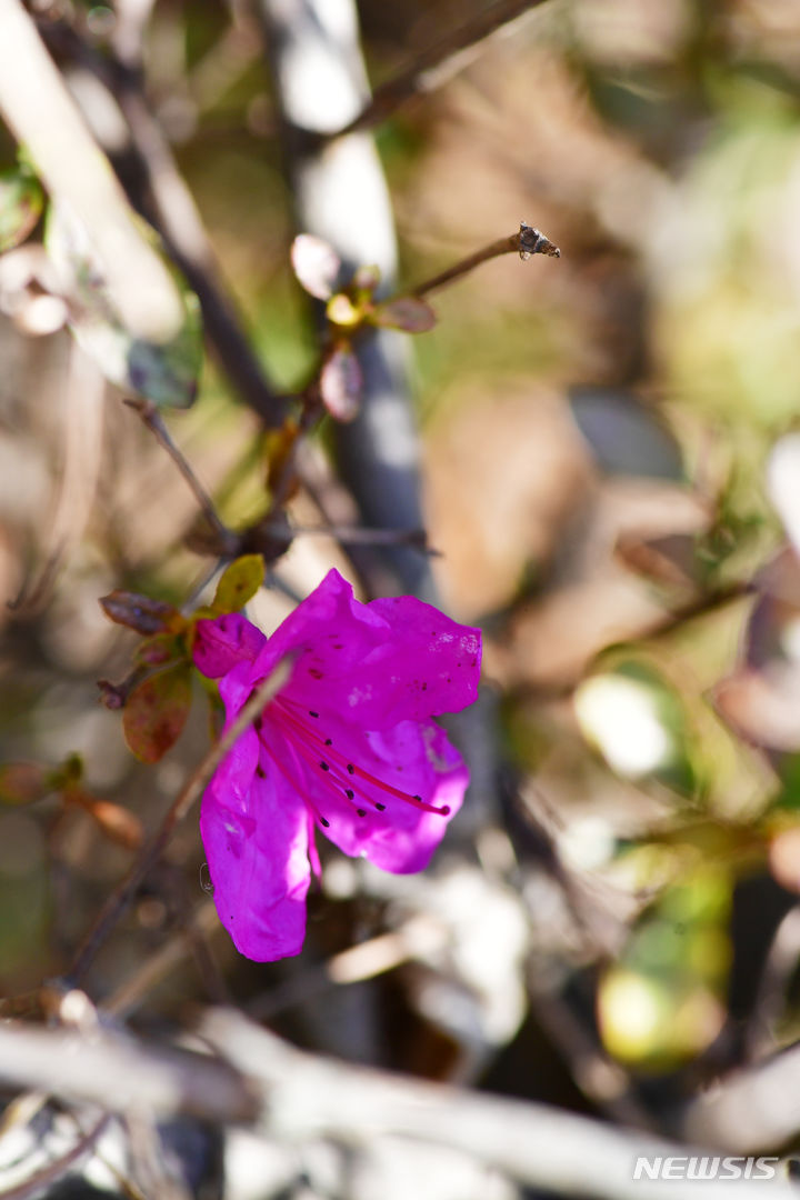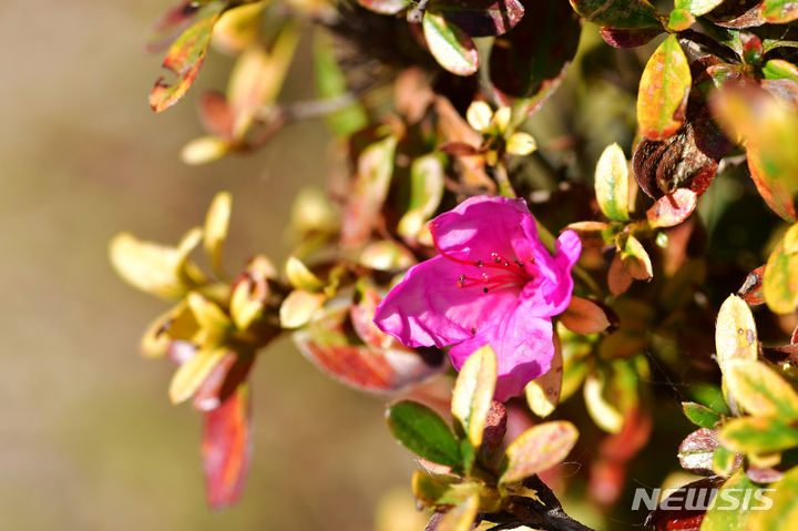 昼間の気温が28度まで上昇するなど11月としては過去最も高い気温を記録した2日午後、慶尚南道南海郡雪川面の道路脇では、本来は5-6月ごろに咲くはずのサツキツツジが季節外れの開花を迎え、視線を引き付けていた。