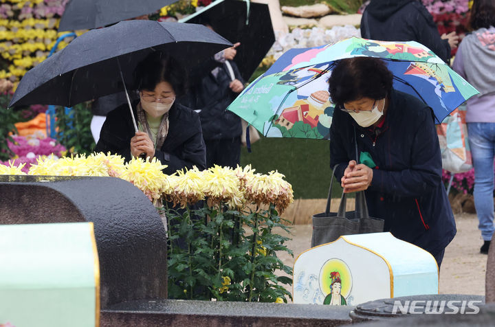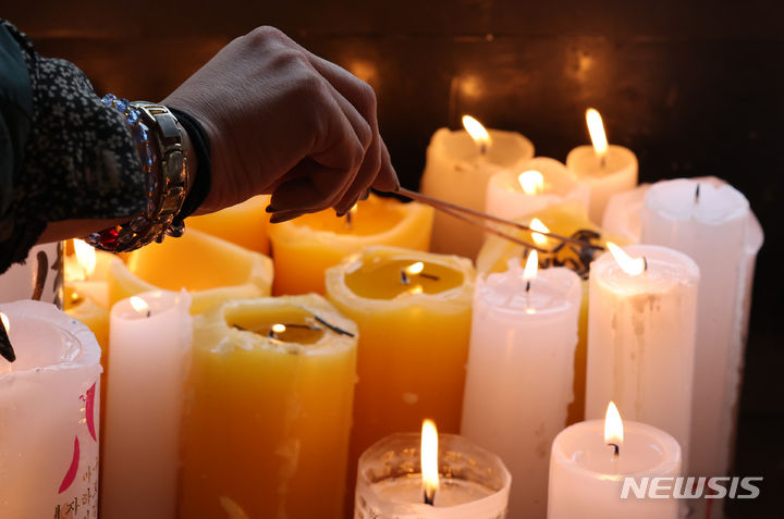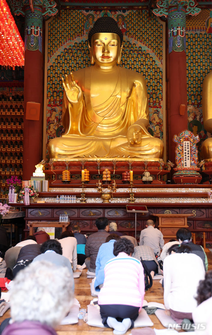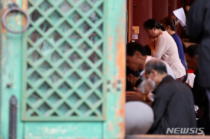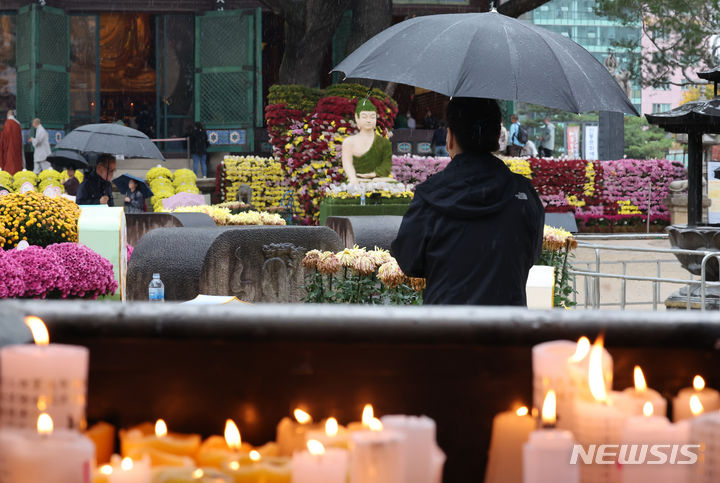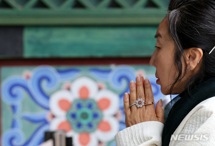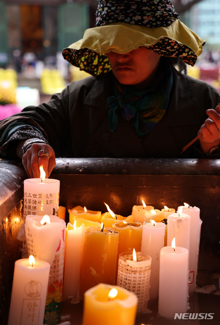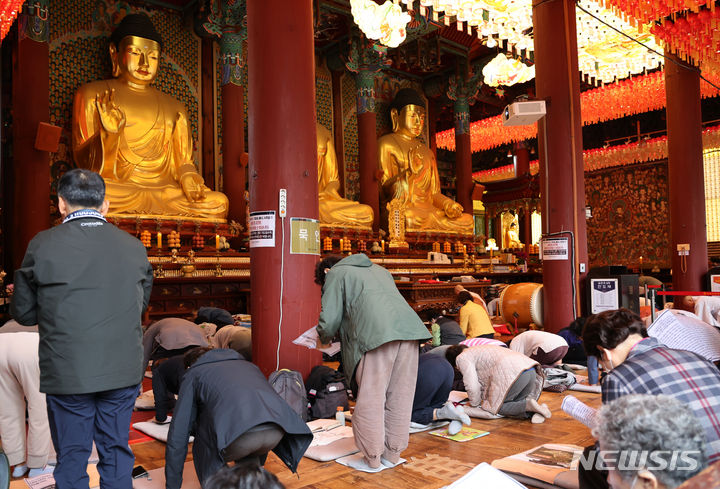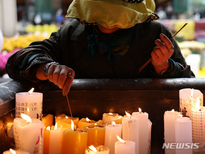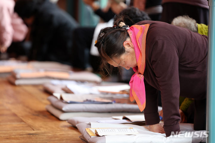 【NEWSIS】2024学年度大学修学能力試験(修能=大学入学共通テストに相当)まであと11日となった5日午前、ソウル市鍾路区の曹渓寺で、受験生の合格を祈る人々。