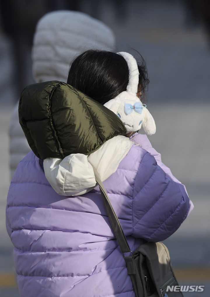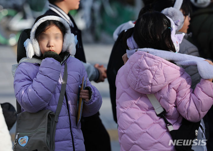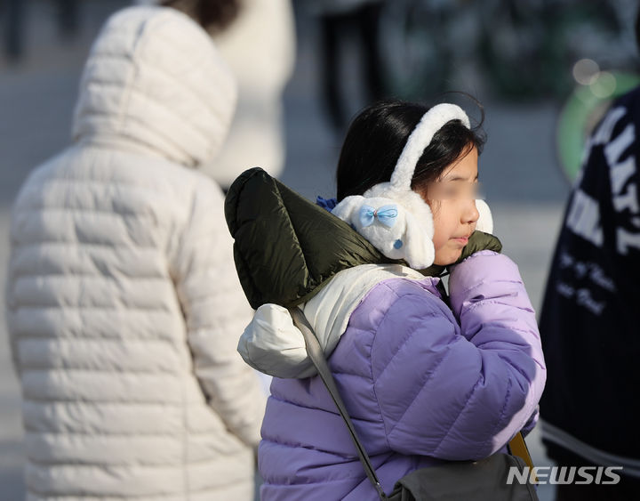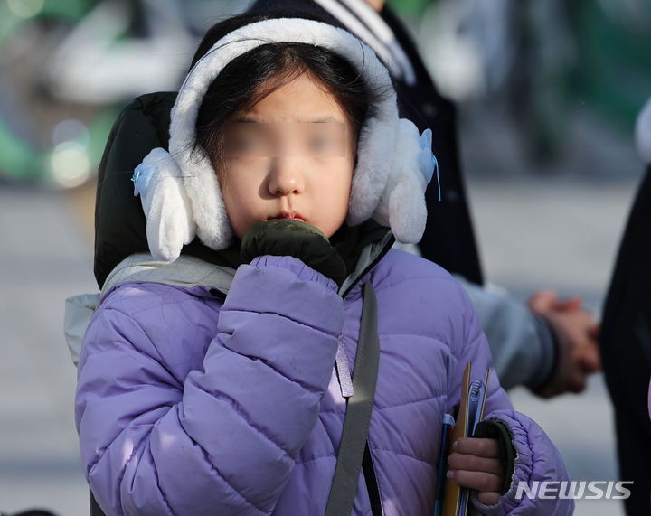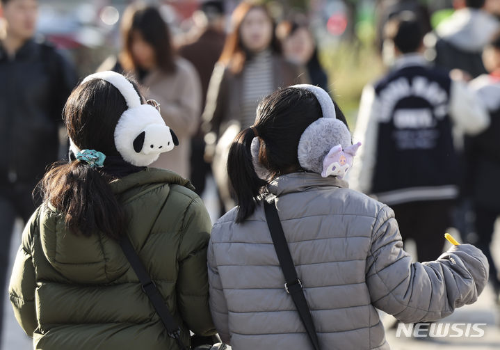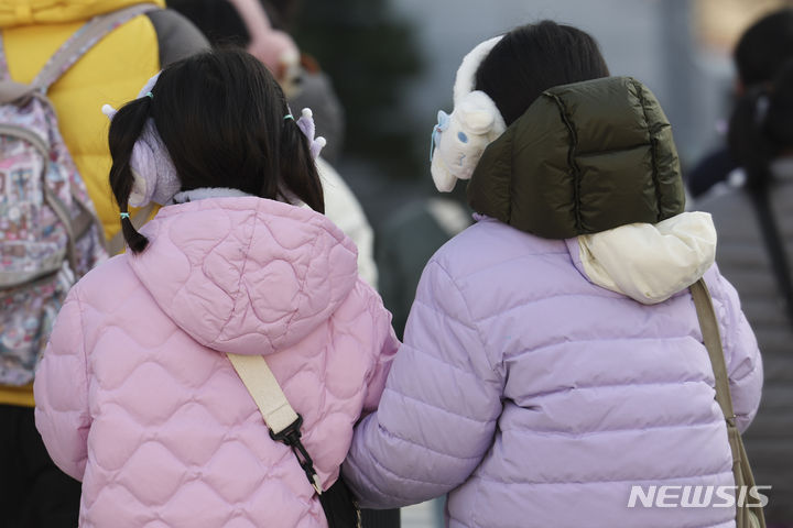 【NEWSIS】冬の始まりを告げるとされる二十四節気の一つ「立冬」だった8日午前、ソウル市鍾路区の世宗大路では、校外学習のためやって来た子どもたちが防寒用のイヤーマフをつけていた。