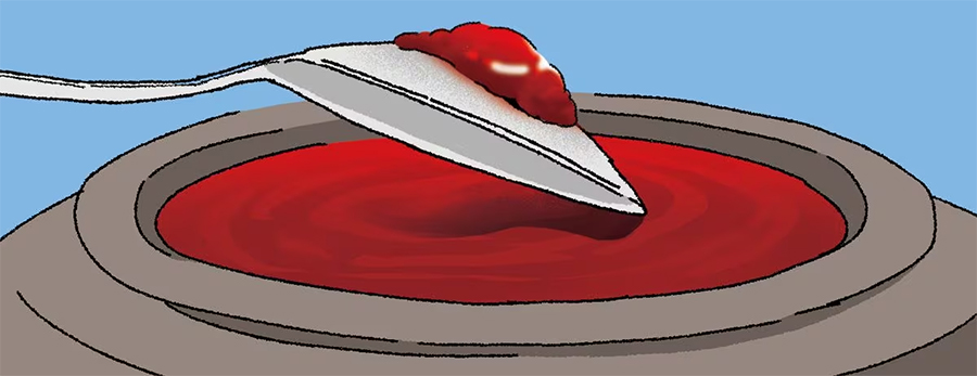 コチュジャン(唐辛子みそ)やテンジャン(韓国みそ)をすくう時は、スプーンを裏返して丸みを帯びている面ですくうと、スプーンの内側にコチュジャンやテンジャンが残らず、鍋などに入れた時、きれいに溶ける。