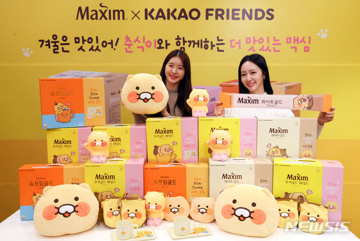 ソウル市中区のスペース・ラオン(Space Raon)で16日、「マキシム×カカオフレンズ チュンシギ・スペシャルパッケージ」発売記念イベントが開かれ、コンパニオンが限定版スペシャルパッケージ商品をPRしている。今回の限定版スペシャルパッケージには、カカオフレンズのキャラクター「チュンシギ(チュンシク)」のグッズが同梱されている。