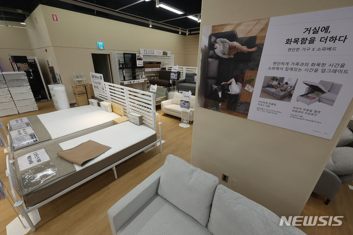 「日本のイケア」とも呼ばれるニトリが、韓国法人「ニトリ・コリア」を設立し、韓国国内に初めて正式な売り場をオープンさせる。1967年に家具専門店として始まったニトリは、36年連続で史上最大の営業利益を上げる等、日本を代表するホームファニシング企業に挙げられる。写真は16日午後、大手スーパー「Eマート下月谷店」(ソウル市城北区)にてメディアに公開されたニトリの体験型売り場の様子。