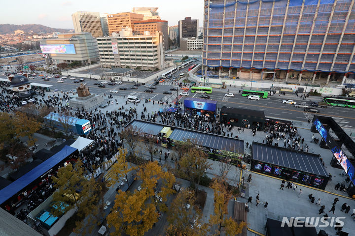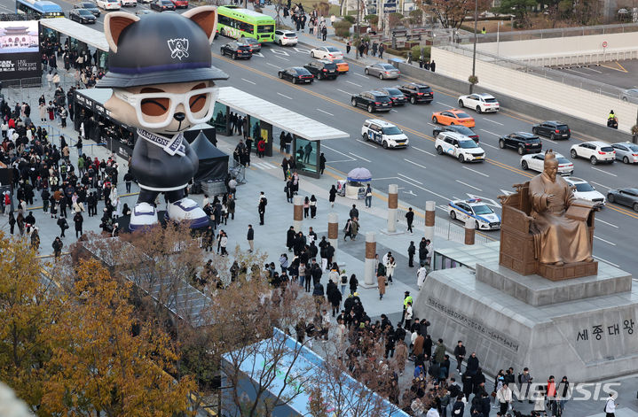 18日午後、「2023ロールドカップ連携eスポーツ・ファンフェスタ」が開催中の光化門広場(ソウル市鍾路区)は、訪れた人々で混雑していた。