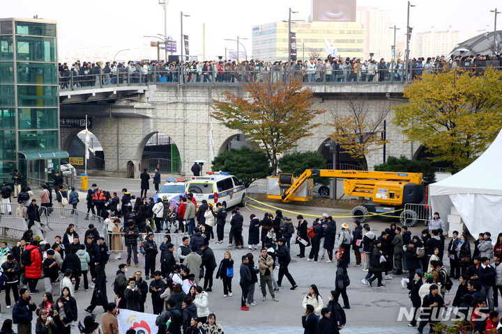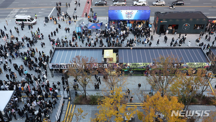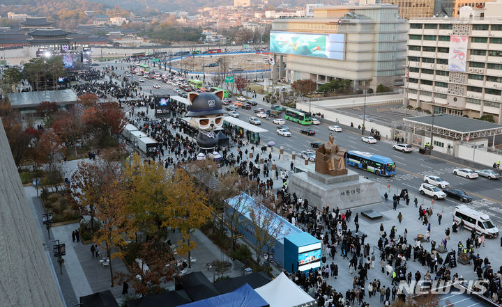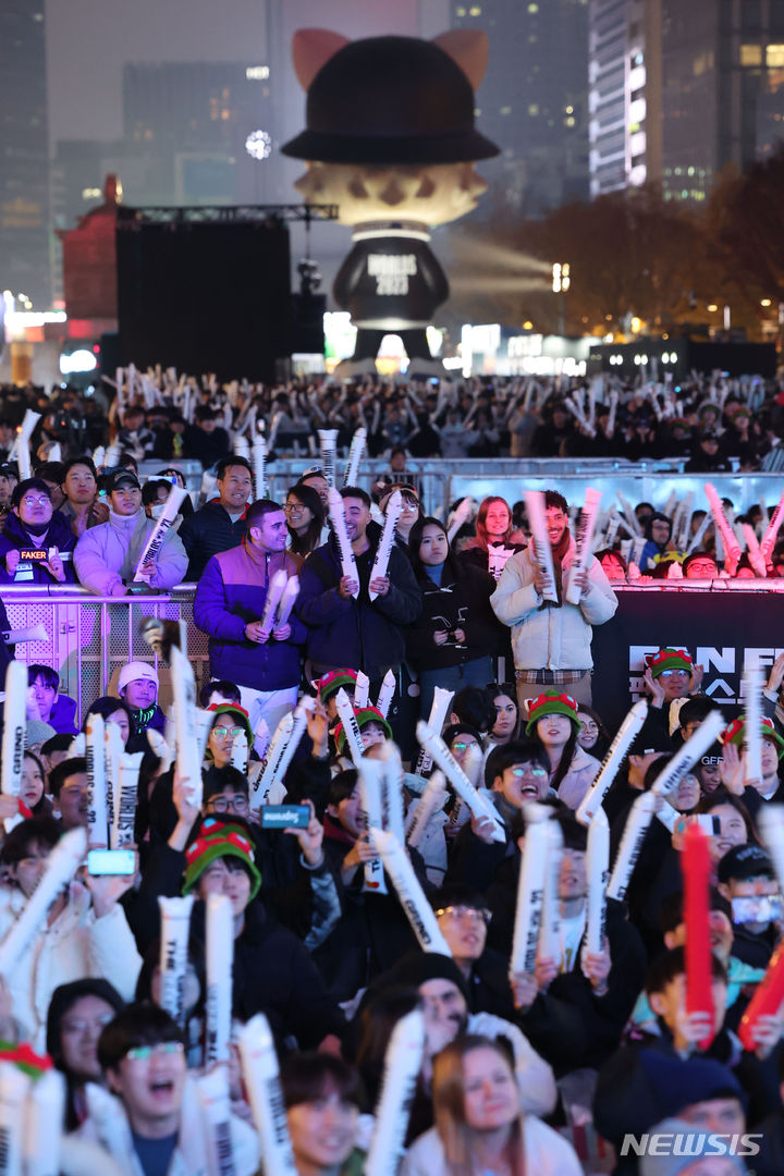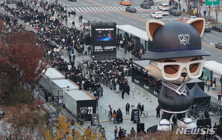 【NEWSIS】18日午後、ソウル市鍾路区の光化門広場で、「2023リーグ・オブ・レジェンド(LoL)ワールドチャンピオンシップ連携eスポーツ・ファン・フェスト」が開催された。写真は大勢の来場者でにぎわう会場の様子。