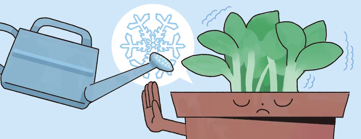 冬は植物の成長スピードが遅くなるので、夏場より植木鉢にやる水を少なめにする。根が凍ることもあるので、朝・晩の水やりは避けた方がいい。