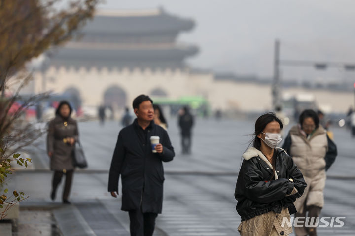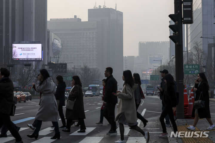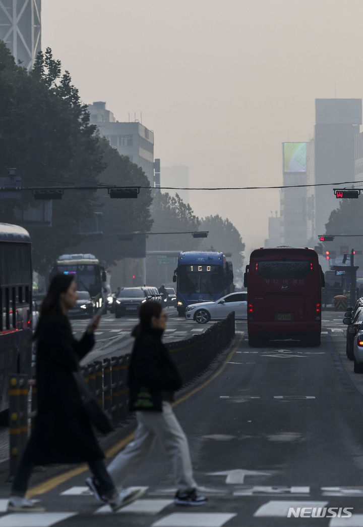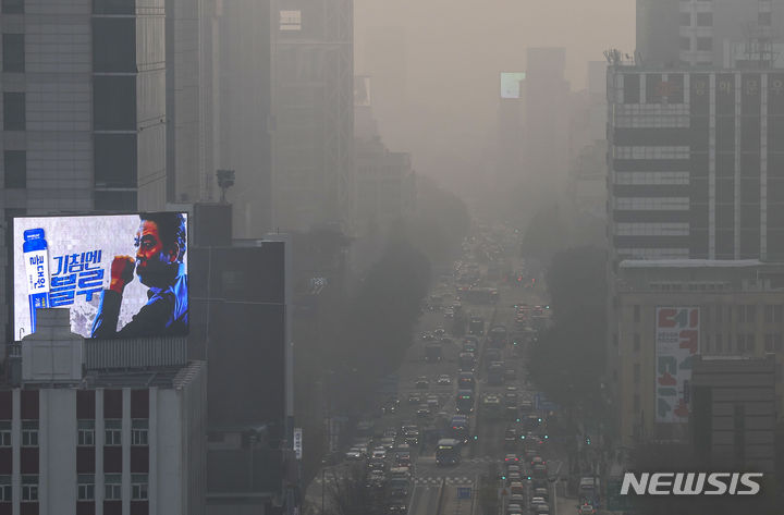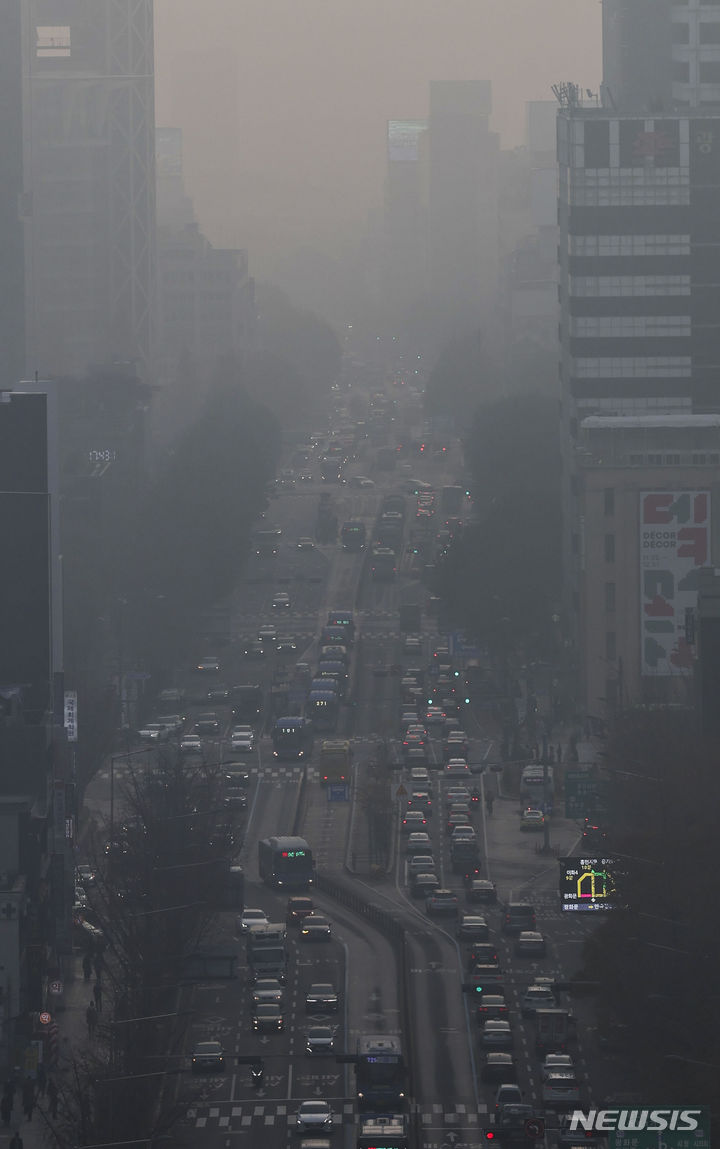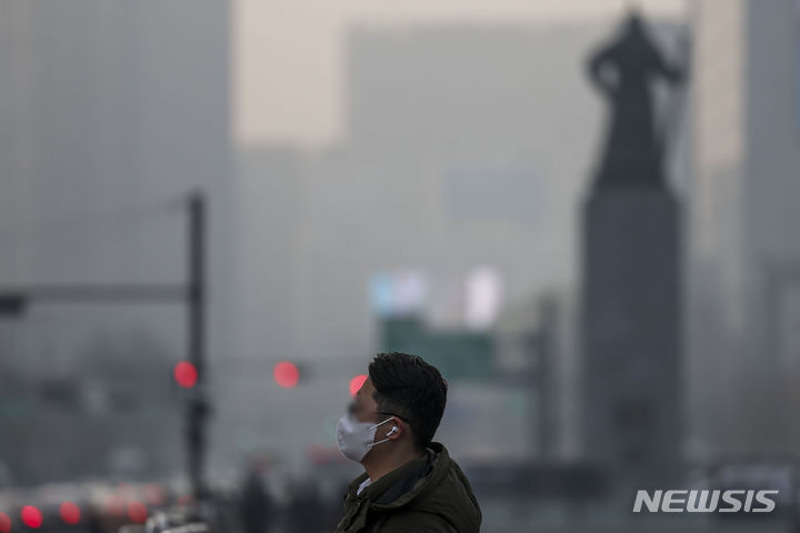 【NEWSIS】ソウル首都圏と韓国中部地方を中心にPM2.5など微小粒子状物質の濃度が「不良」となった23日、ソウルの中心部はかすんでいた。