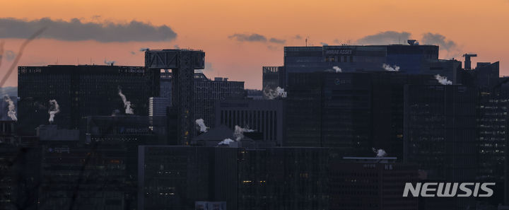 【NEWSIS】ソウルと首都圏に寒波注意報が出された24日、ソウル中心部のビルからは水蒸気が立ちのぼっていた。