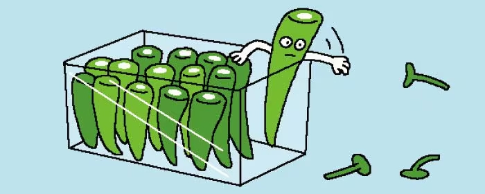 トウガラシは水気を完全に切った後、へたを取って冷蔵保存する。密閉容器にへたがあった部分が上に来るように立てて保存するとさらに長持ちする。