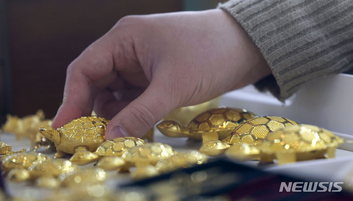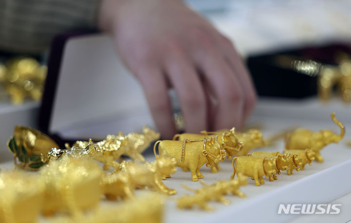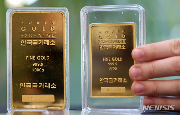 米国連邦準備制度理事会(FRB)による基準金利引き上げが終了したという確信が高まり、国際金価格が1オンス当たり2010ドルを超え、半年ぶりに最高値を更新した。関連業界では、1オンス当たり2500ドルを突破するだろうという見方もある。写真は28日、ソウル市鍾路区の韓国金取引所で金が販売されている様子。