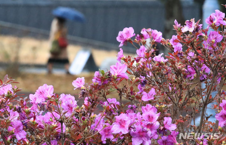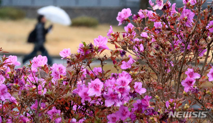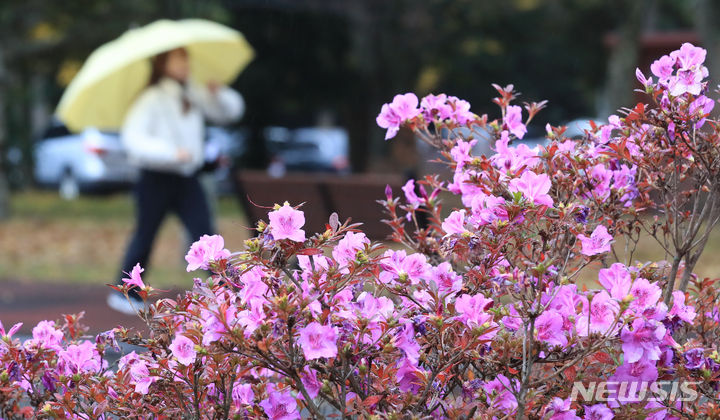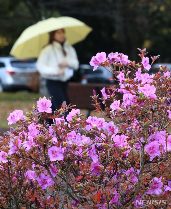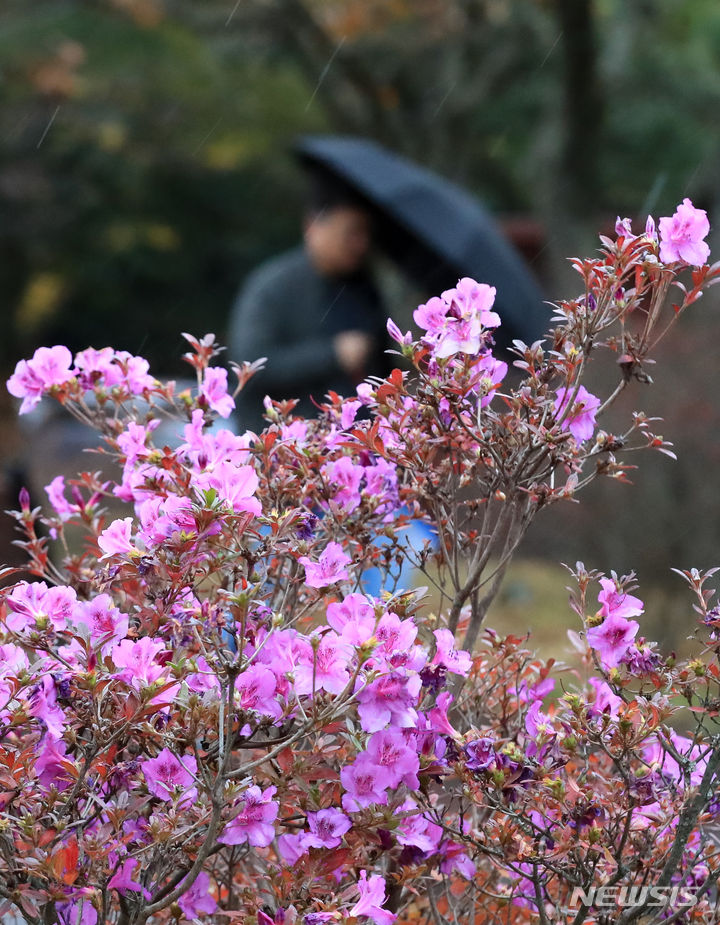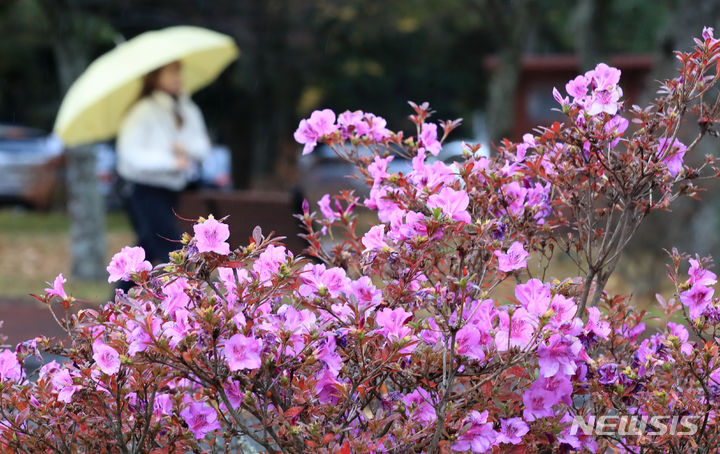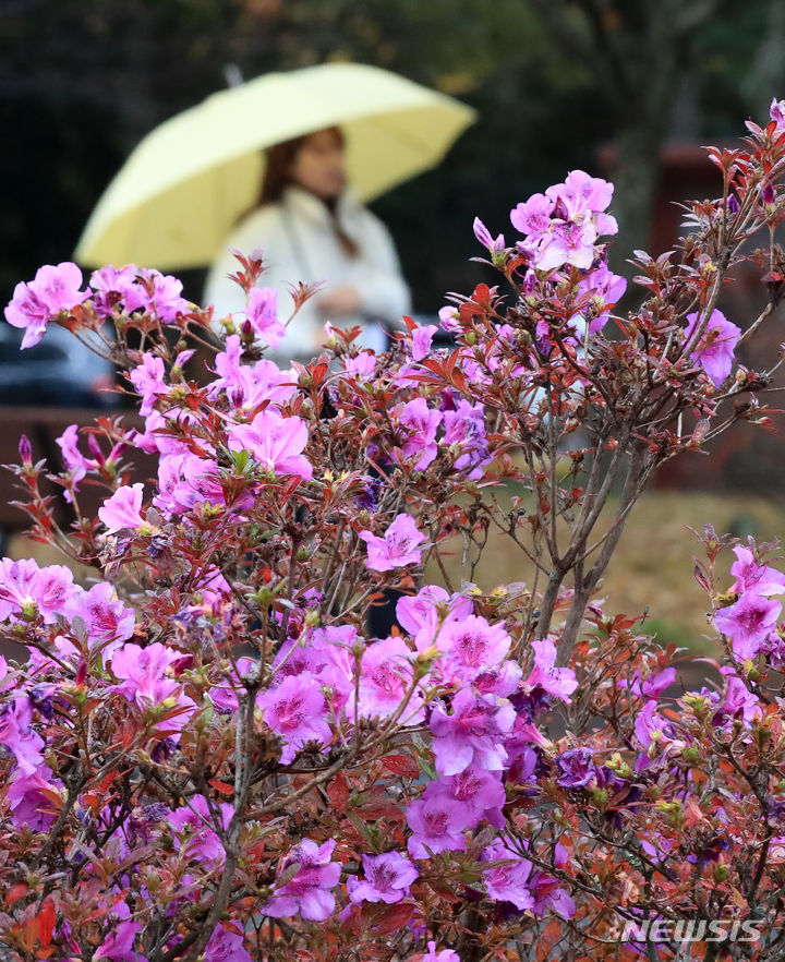全国的に真冬並みの寒さとなった30日午前、済州大学の校庭では春の花であるツツジが咲き、季節外れの風景が広がっていた。