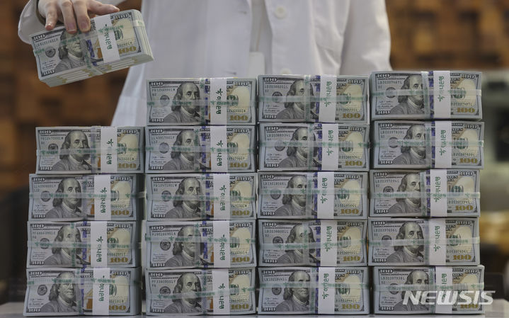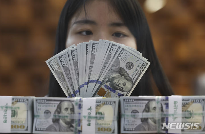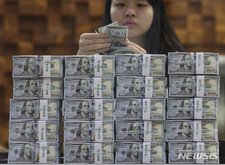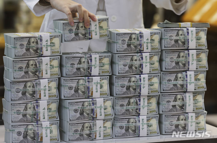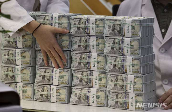 ソウル市中区のハナ銀行偽変造対応センターで5日、行員らがドル紙幣を手にしている。韓国銀行は、11月末の外貨準備高は4170億8000万ドルで、10月末(4128億7000万ドル)に比べ42億1000万ドル増加したと発表した。