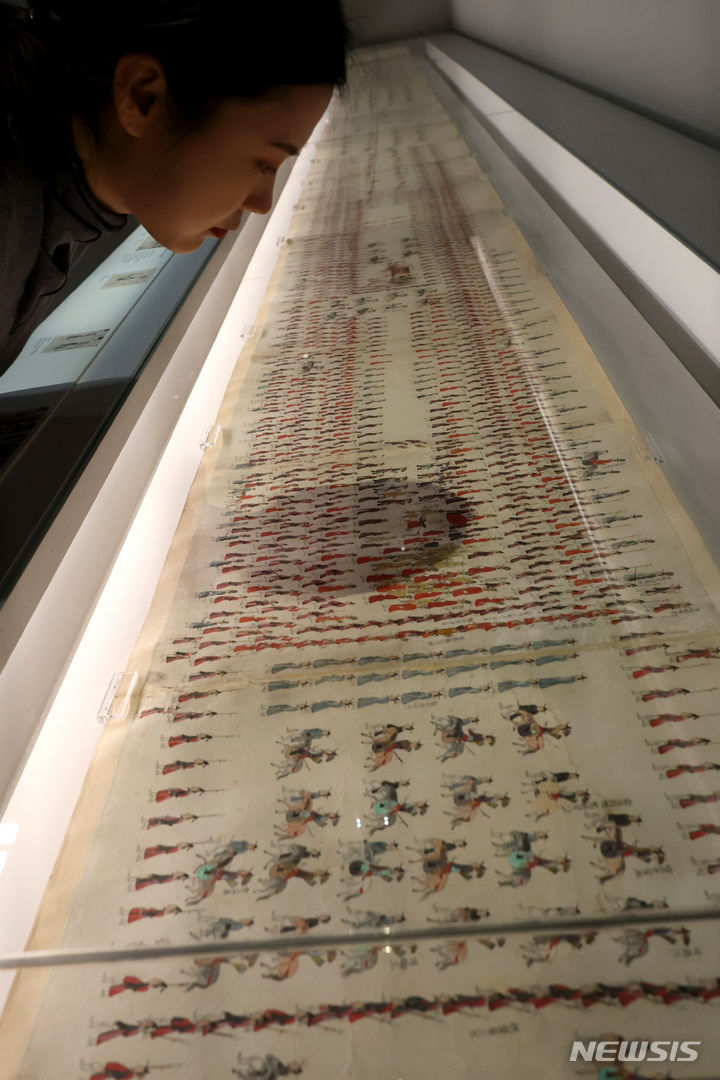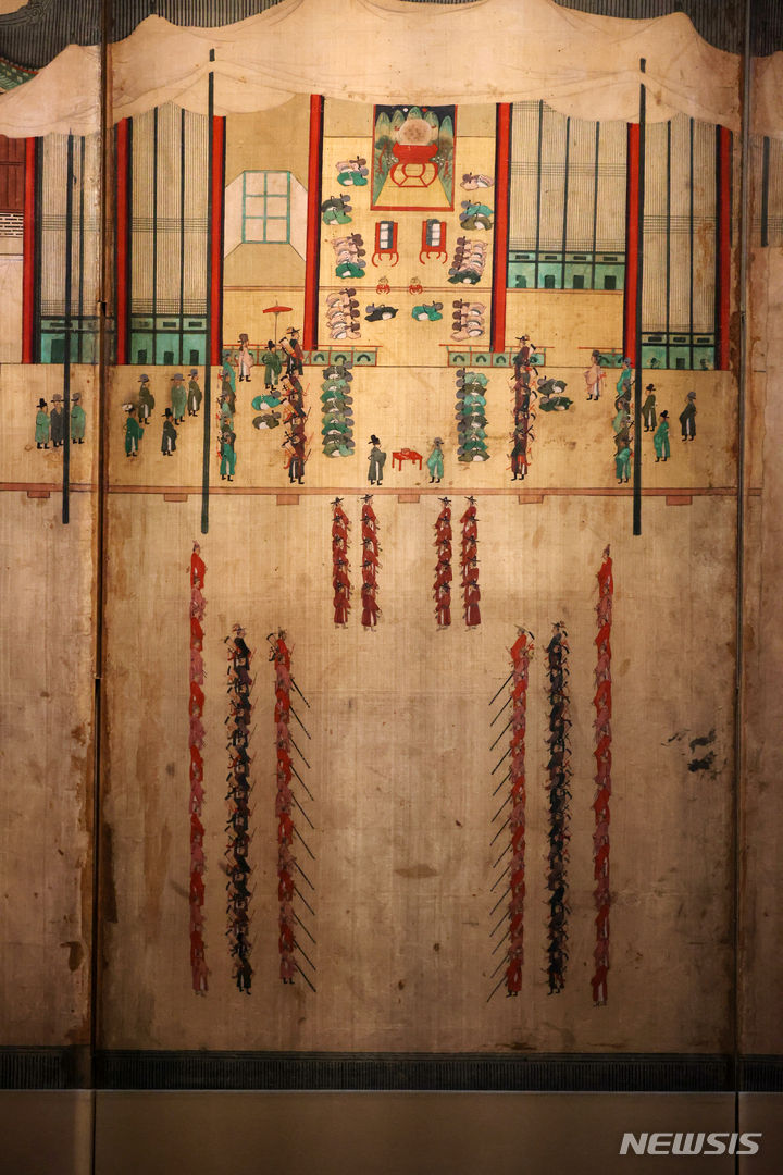 国立中央博物館は7日、2024年に英祖(在位1724-1776)即位300周年を迎えるに当たり開催する特別展「蕩蕩平平-文と絵の力」の開幕を控え、ソウル市竜山区の国立中央博物館常設展示館でメディア公開イベントを行い、主な遺物を披露した。今回の特別展は、英祖と正祖(在位1776-1800)が「蕩平(平等)な世の中」を成し遂げるために「文と絵」を活用し、コミュニケーションを図ろうと努力する姿に注目した展示だ。英祖と正祖が書いた御筆、二人の王の意図を反映して製作された宮中行事図など、18世紀の宮中書画の華やかな品格と重々しさを代表する54件88点が披露される。
