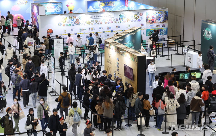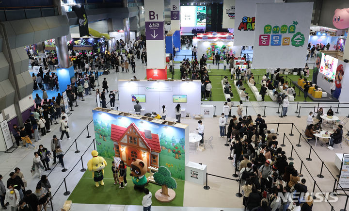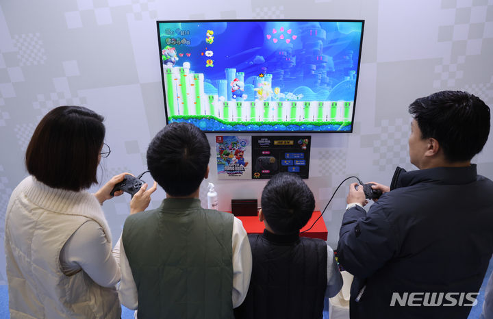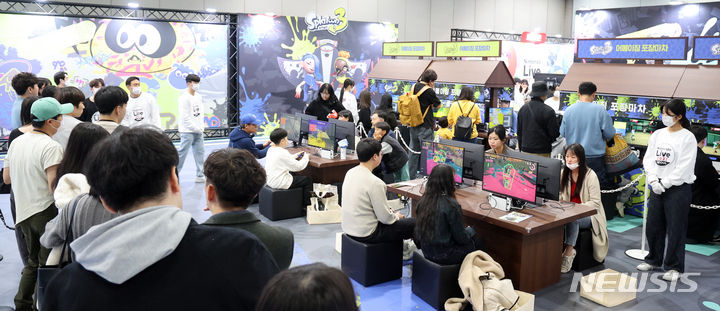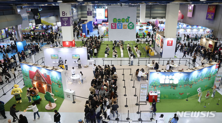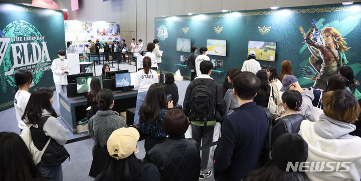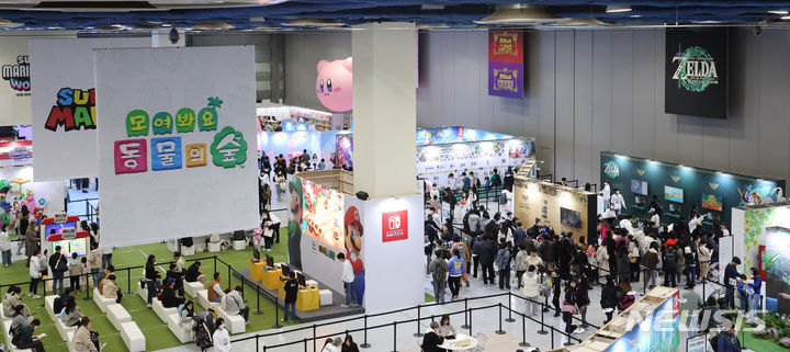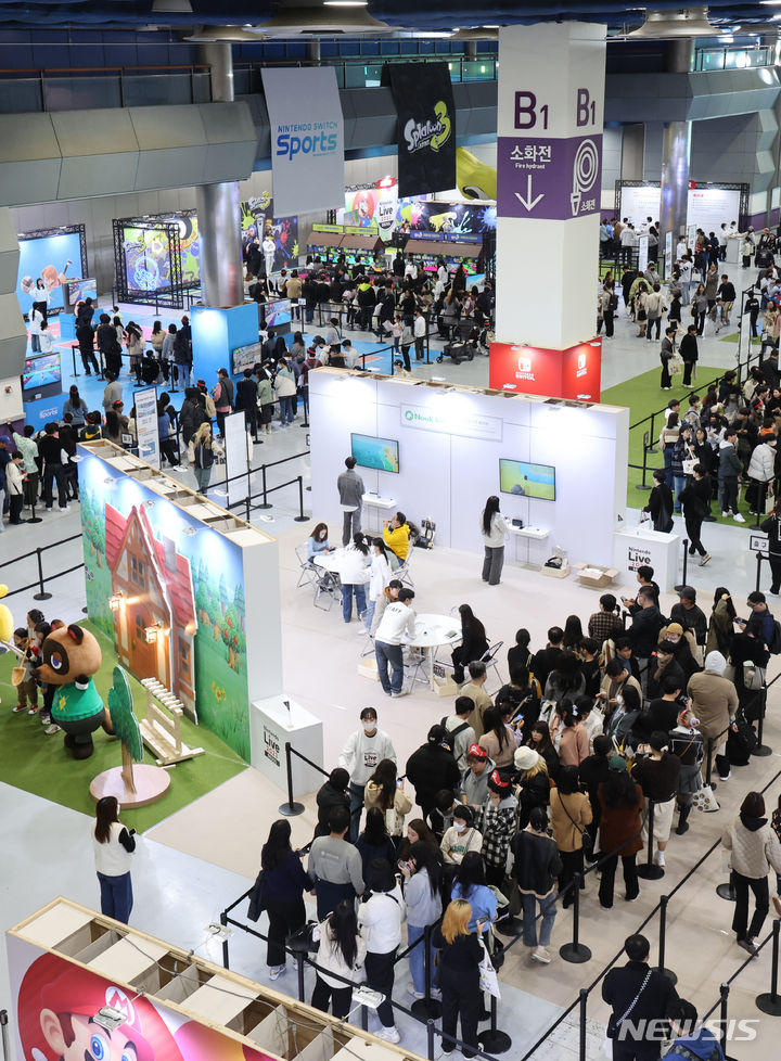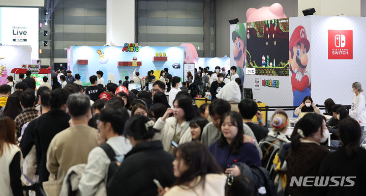 【NEWSIS】10日午後、ソウル市江南区のコンベンションセンター・COEXで、ゲーム・イベント「ニンテンドー・ライブ2023ソウル」が開催された。写真は入場者でにぎわう会場の様子。