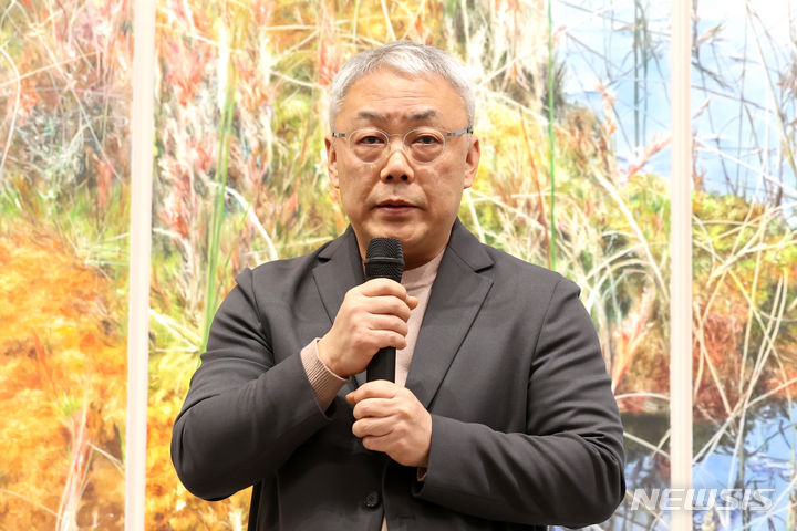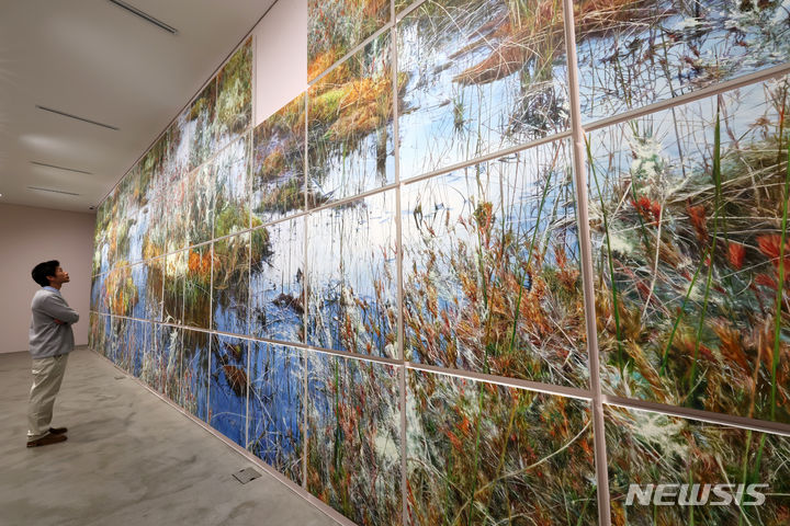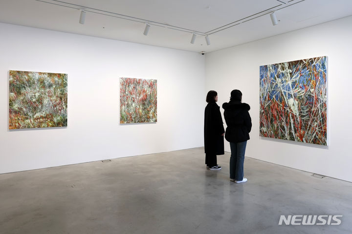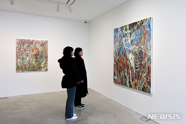 国際ギャラリーは14日、ソウル市鍾路区の国際ギャラリー・ソウルK1で、画家イ・グァンホの個展「BLOW-UP」の記者懇談会を開き、主な作品を披露した。本展示のタイトル「BLOW-UP」は、イ・グァンホがインスピレーションを得たミケランジェロ・アントニオーニ監督の映画『欲望』(1967)の原題『Blow-up』を引用したもので、写真や映画を拡大するという用語上の意味を持つ。