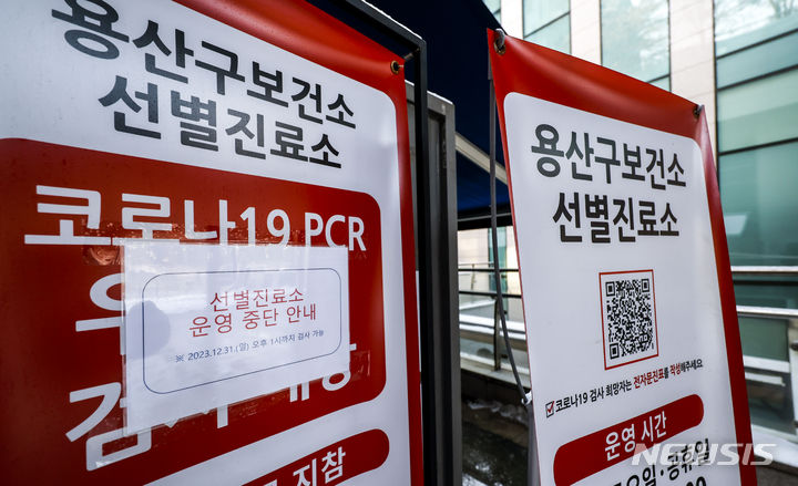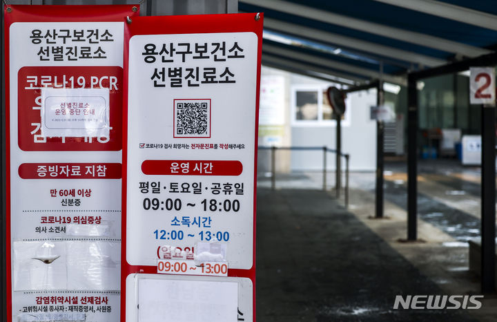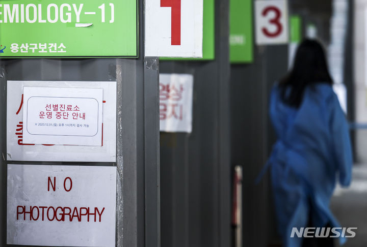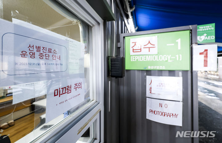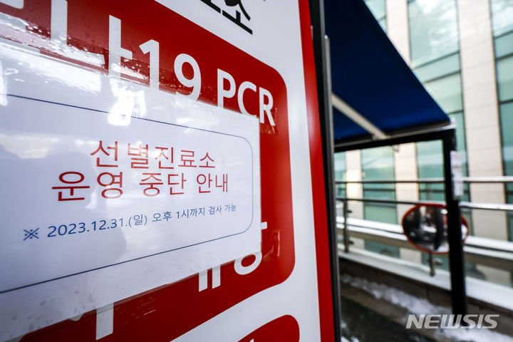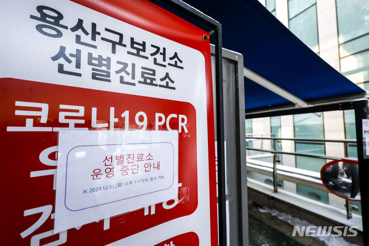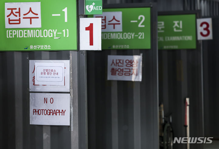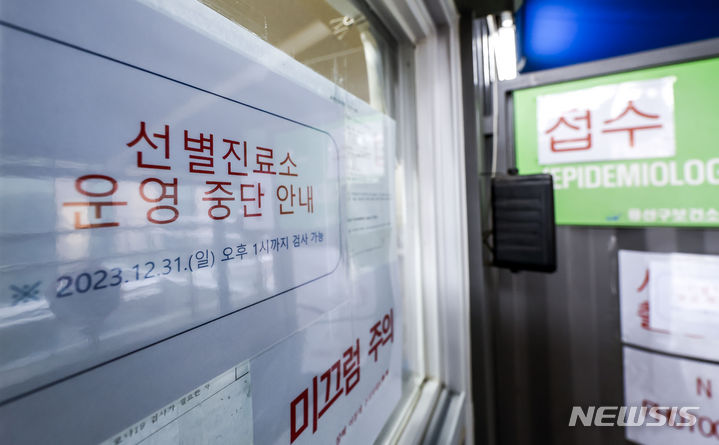 【NEWSIS】24日、ソウル市竜山区保健所選別診療所に掲示された運営終了に関する案内文。韓国政府の新型コロナウイルス対応体系改編に基づき、新型コロナウイルスのPCR検査を実施する選別診療所は年内で終了する。政府は新型コロナウイルス感染症の危機段階を従来の水準である「警戒」に維持しつつも、PCR検査件数の減少や保健所の機能正常化の必要などを理由に選別診療所の運営を終了することにした。