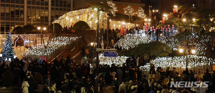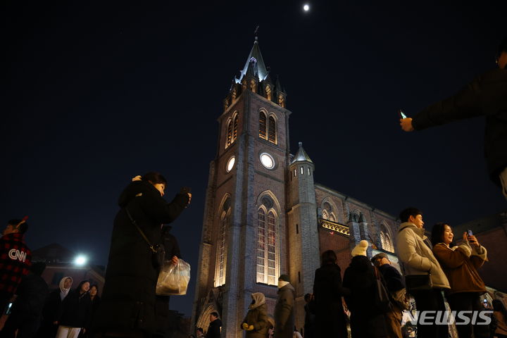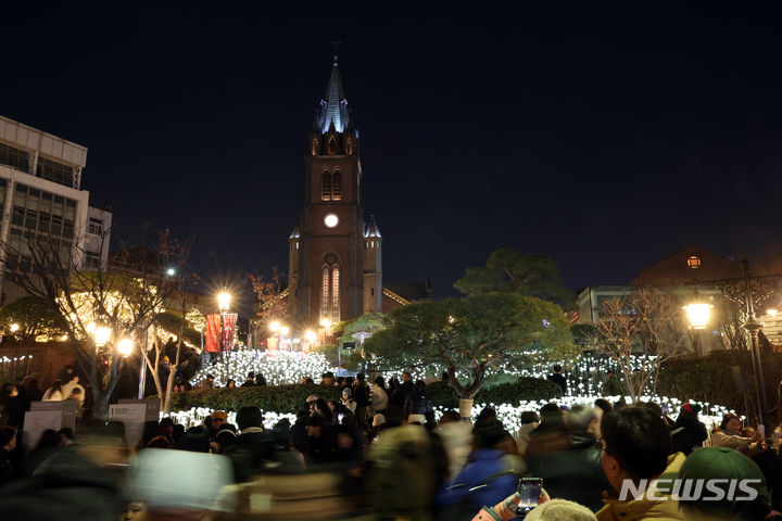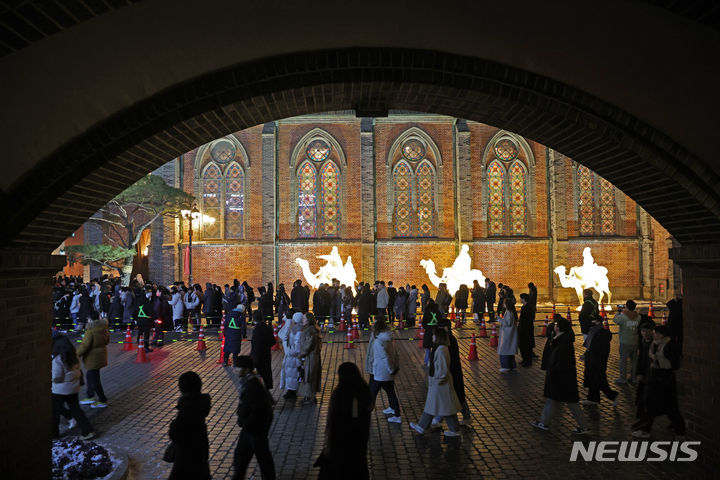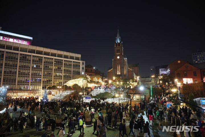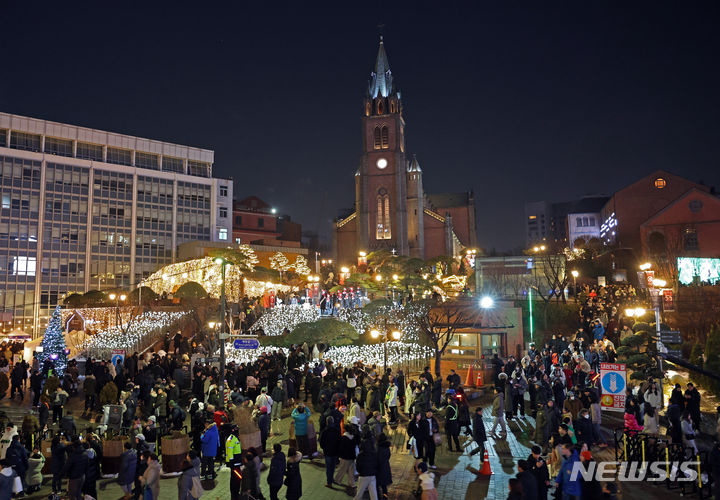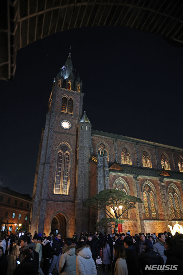 【NEWSIS】クリスマスイブの24日午後、ソウル市中区の明洞聖堂には大勢の人々が集まった。