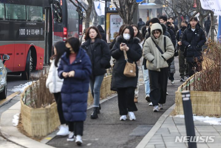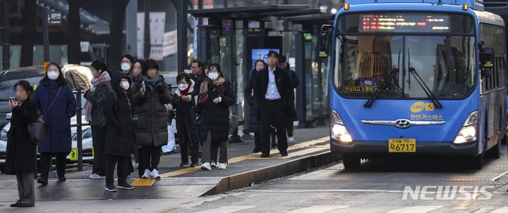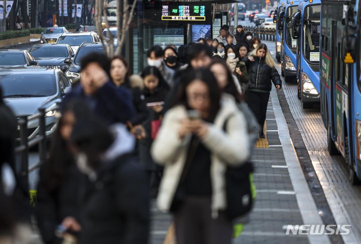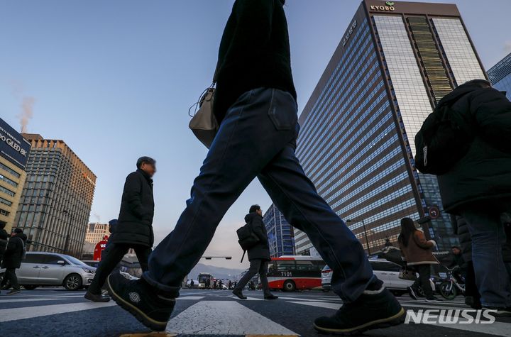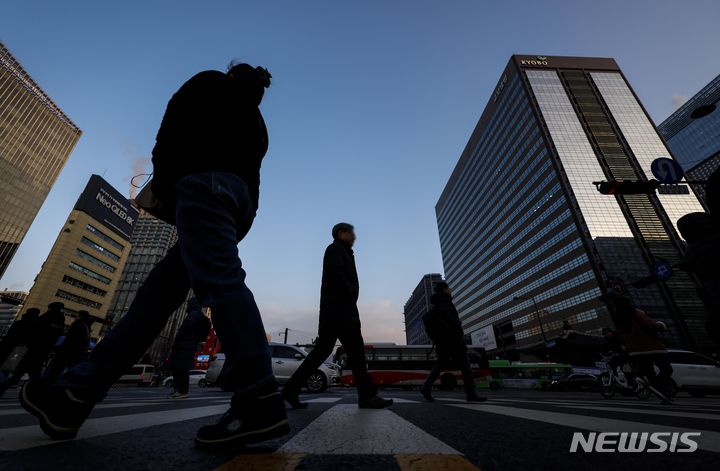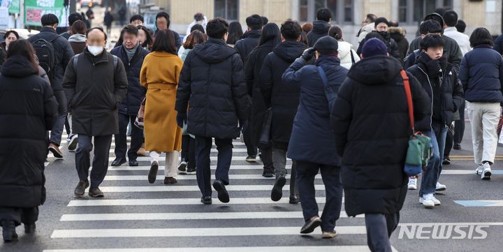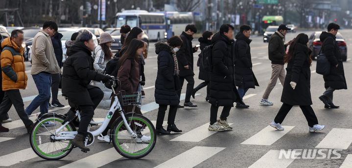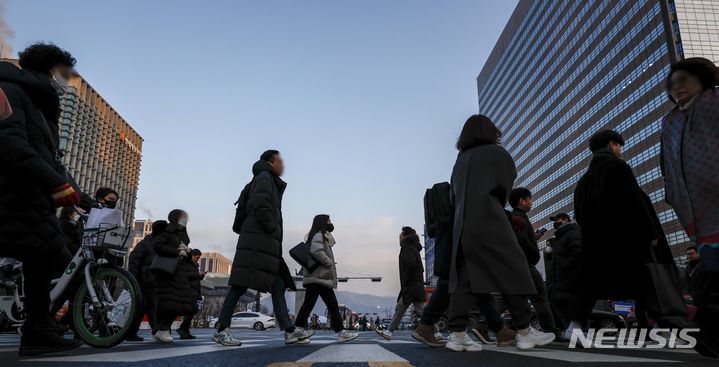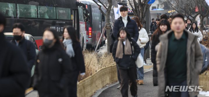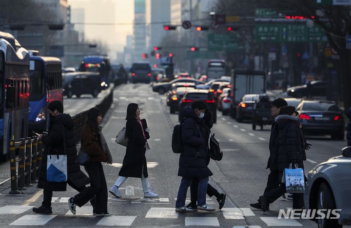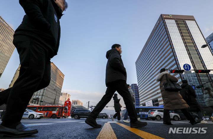 クリスマス連休が終わり、ソウル市鍾路区の世宗路交差点では26日、出勤する多くの市民の姿が見られた。