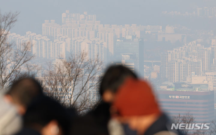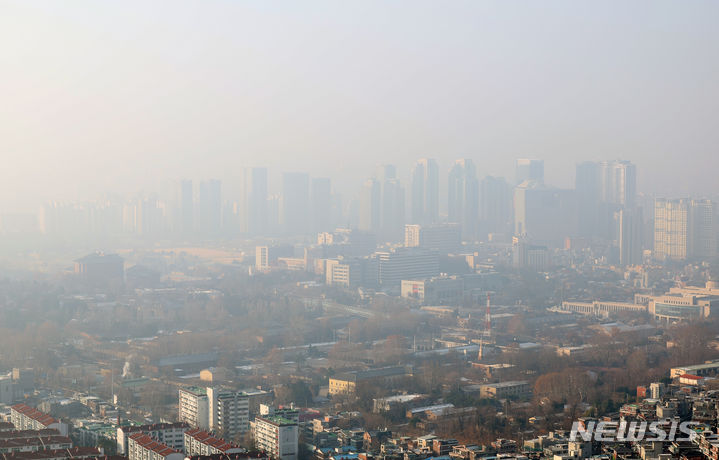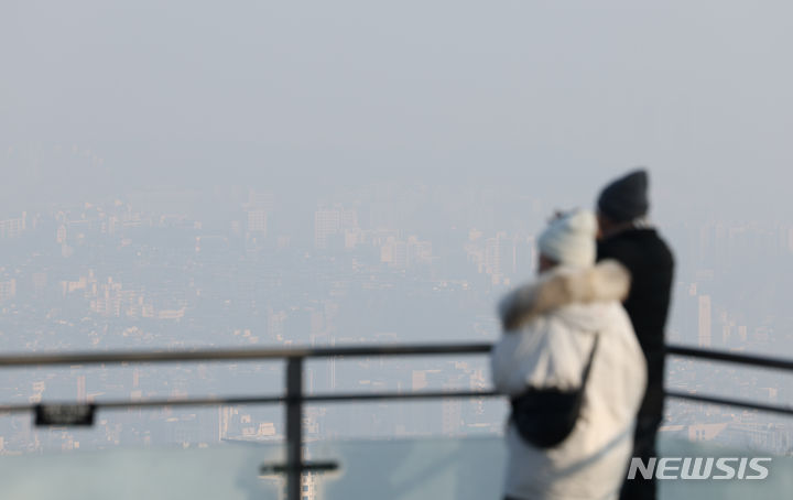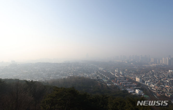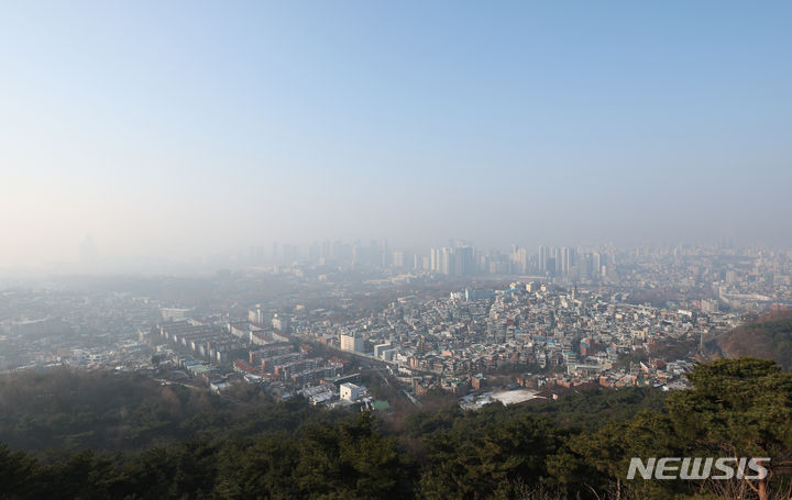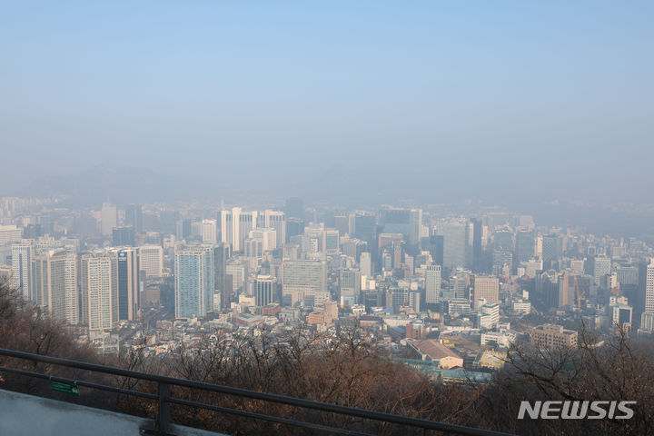 【NEWSIS】ソウル地域におけるPM2.5などの微小粒子状物質濃度が「不良」となった27日、ソウル・南山から見た空はかすんでいた。