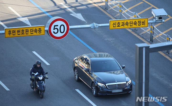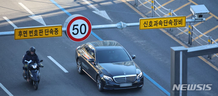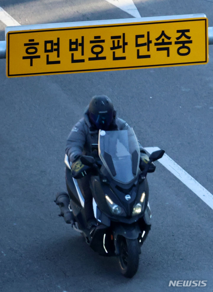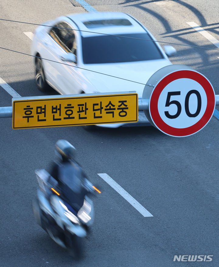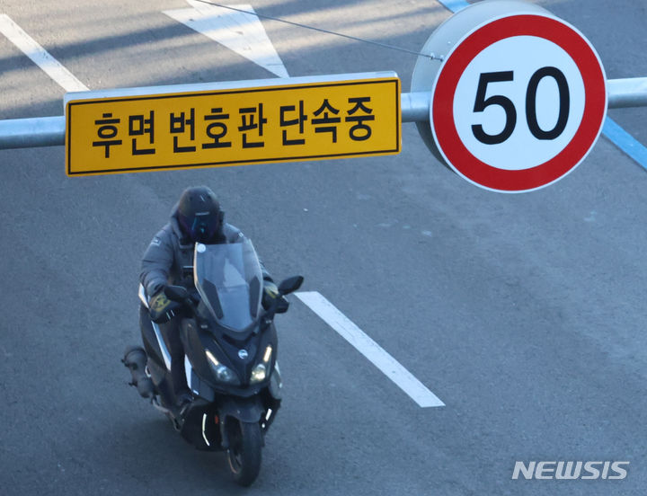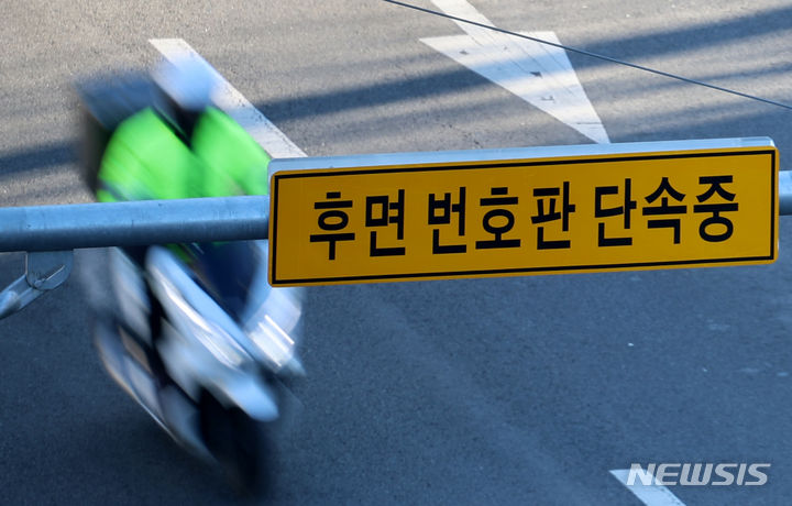 8日から後面ナンバープレートを活用してヘルメット未着用二輪車の無人取り締まりが施行される。警察は、韓国国内73カ所で取り締まり・指導・公報を行い、3月1日から漸進的に正式取り締まりを実施する。写真は8日、ソウル市内に設置された後面ナンバープレート取り締まり装置。
