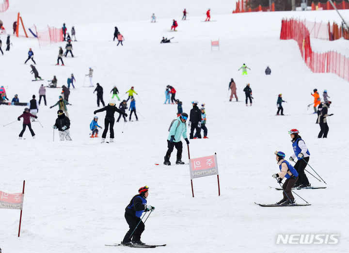 週末ににぎわうスキー場 /江原道