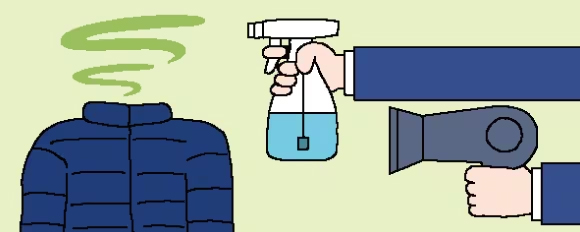 服に焼肉のにおいが付いてしまった時は、霧吹きで水を吹きかけてからヘアドライヤーで5分間乾かすと消える。水に香水や柔軟剤を混ぜると、においを早く消すことができる。