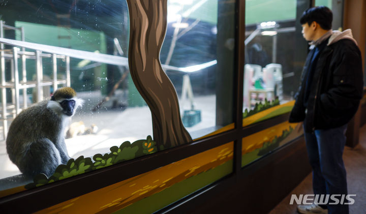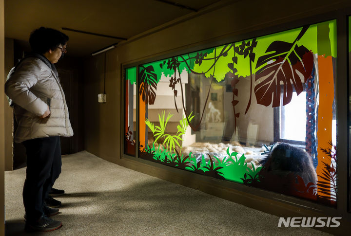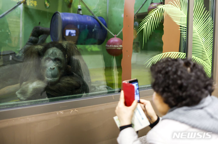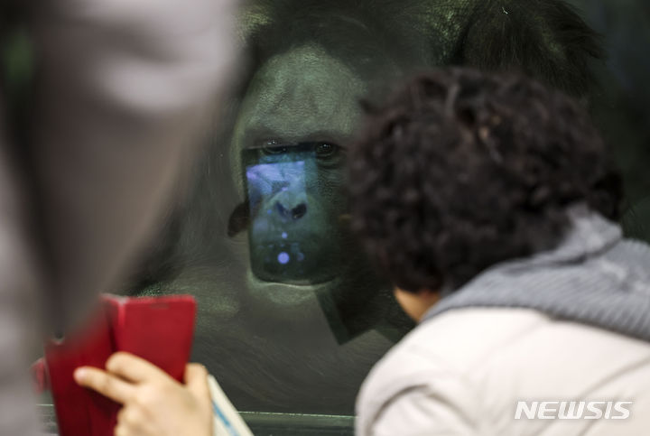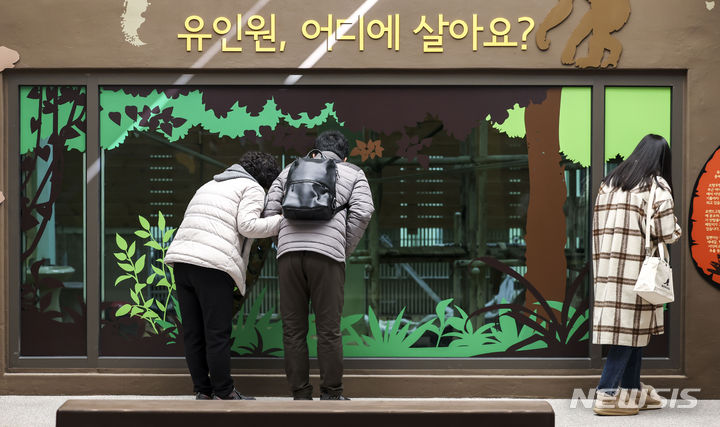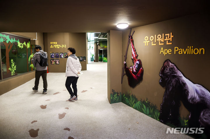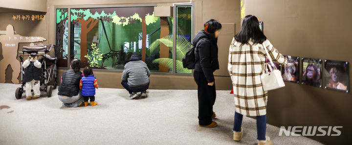 29日、京畿道果川市のソウル大公園にある類人猿館を訪れた市民が、動物を見てまわっている様子。昨年6月から観覧環境整備が始まったソウル大公園類人猿館は、サルたちの活動空間を改善する等の整備を終え、29日から運営を再開した。