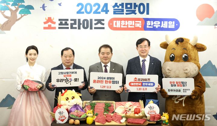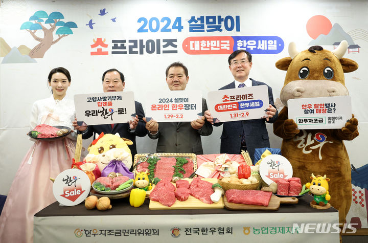 旧正月(今年は2月10日)を控え、ソウル市中区のプレスセンターで1月30日、韓牛(韓国伝統の肉牛)自助金管理委員会が「ソ(牛)プライズ2024大韓民国韓牛セール」を紹介した。政府、韓牛農家、流通業者が賛同した今回の割引イベントは、全国の大型スーパー、農畜協店舗およびオンラインショッピングモールを通じて1月31日から2月9日まで開催され、韓牛自助金が手掛ける年迎えオンライン韓牛市場は2月2日まで実施される。