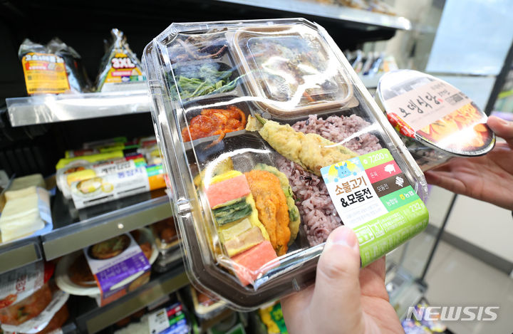 韓国のコンビニチェーンCUが、単身世帯の顧客が手軽・簡便にさまざまな名節の料理を楽しみつつ名節の雰囲気を感じられるように「旧正月宮中食 牛プルコギ弁当」を発売した。写真は1日、ソウル市内のCUで「旧正月宮中食 牛プルコギ弁当」を選んでいる客の様子。