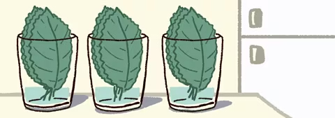 残ったエゴマの葉は、コップなど長い筒状の容器に、軸の部分が下になるように立てて入れた後、水を少し注いで冷蔵保存すると、かなり長持ちする。
