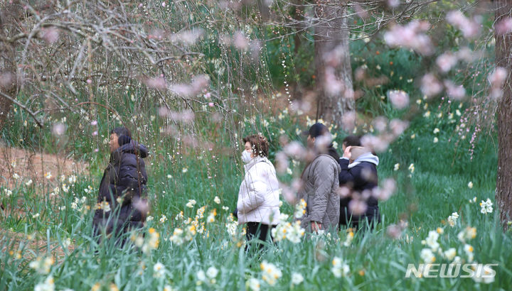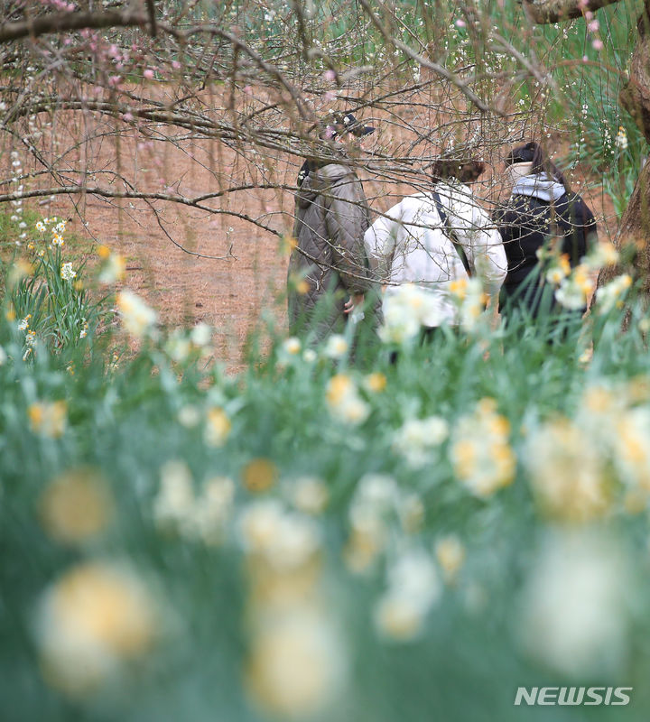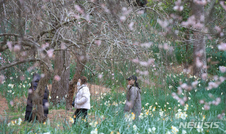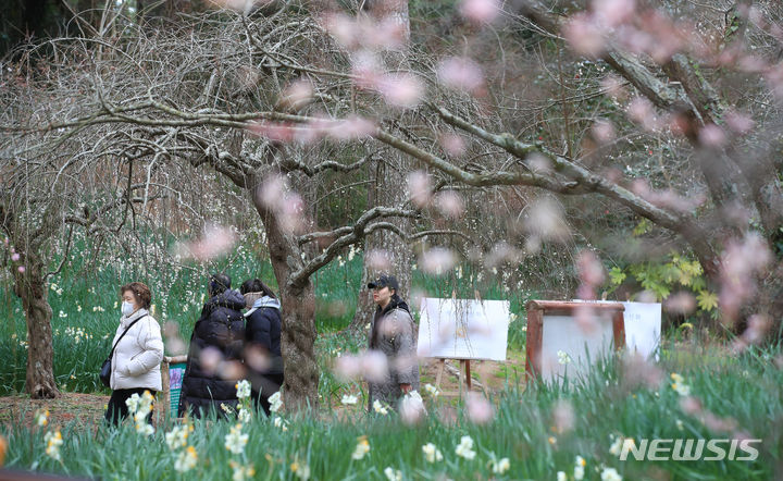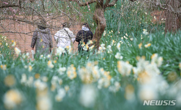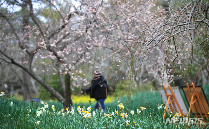 旧正月(今年は2月10日)連休初日の9日午前、済州市翰林邑の翰林公園では水仙や梅の花が咲き誇り、観光客たちを魅了していた。