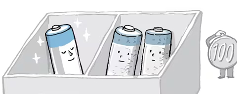乾電池は新しい乾電池と使った乾電池が混ざらないように分けて入れよう。小銭や金属製品と一緒に保管すると、放電しやすくなる。