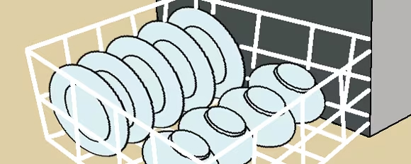 食洗機を使う時、茶わんや汁わんなど深い器はへこんだ部分が下に向くように入れよう。平たい皿は立てて入れる。器は重ねない方がいい。