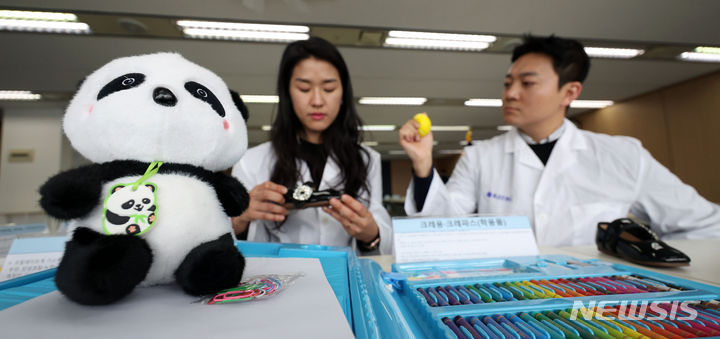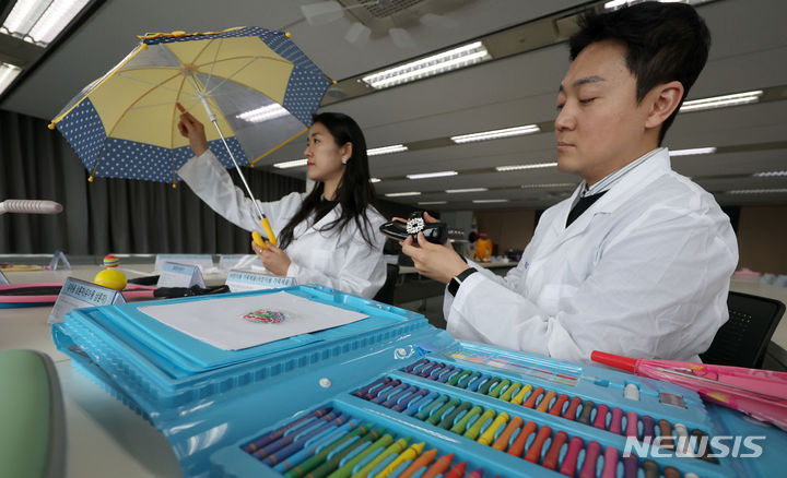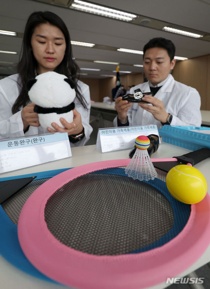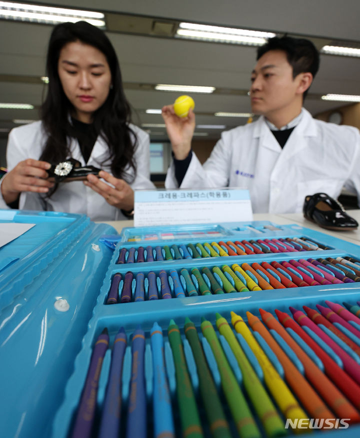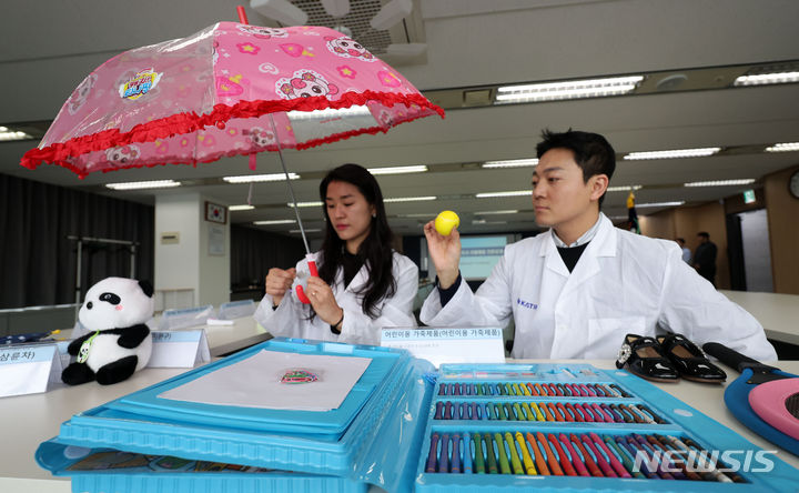産業通商資源部(省に相当)国家技術標準院が29日、ソウル市瑞草区の韓国製品安全管理院で、春の新学期用品など製品安全性調査を通してリコール命令が下ったおもちゃ・学用品などを公開した。