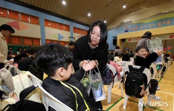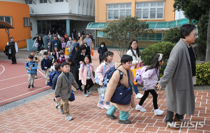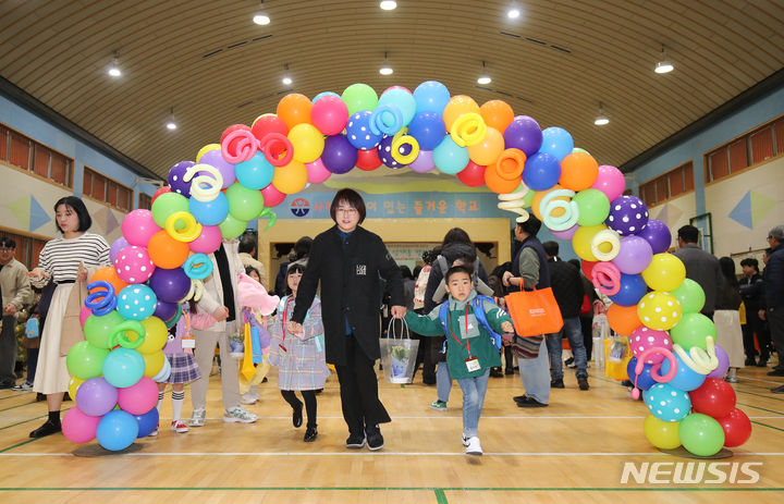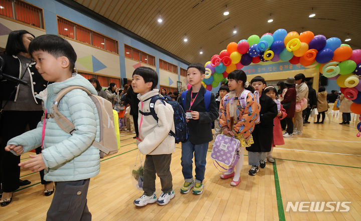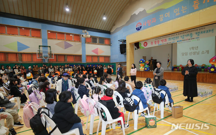 小中高校で新学期が始まった4日午前、済州市一徒2洞の東光小学校体育館で入学式が行われた。