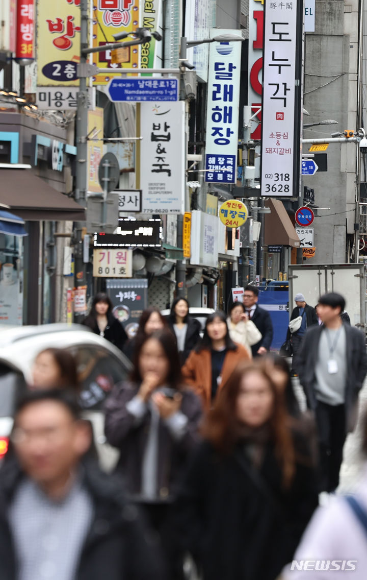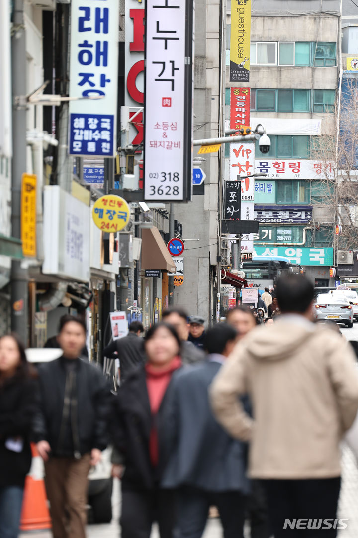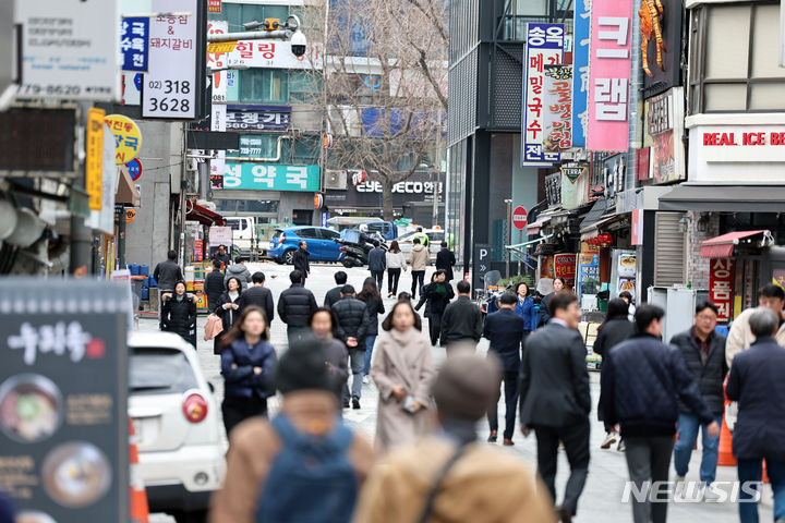 6日、混雑しているソウル市中区北倉洞の飲食店街の様子。ソウル市中区の明洞通りで空き店舗率が上昇し、同じ中区の北倉洞が賃料1位の座を奪った。ソウル市が6日に発表した「2023年商家賃貸借実態調査」報告書によると、昨年、店舗賃料が最も高かった場所は北倉洞だった。