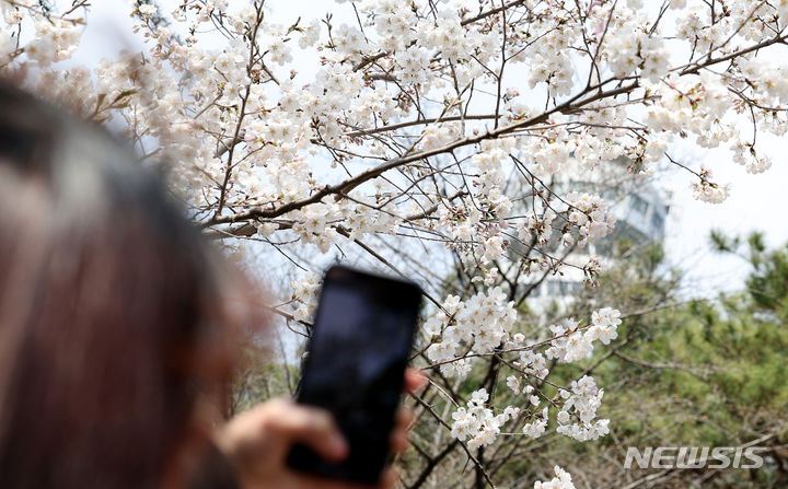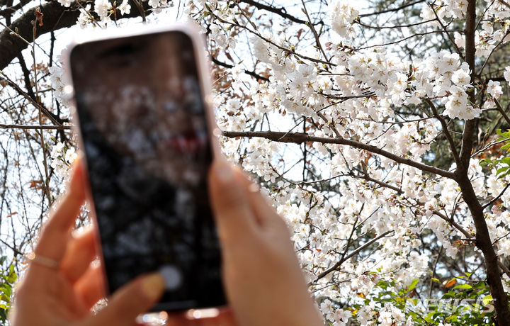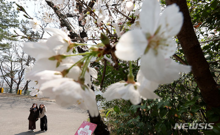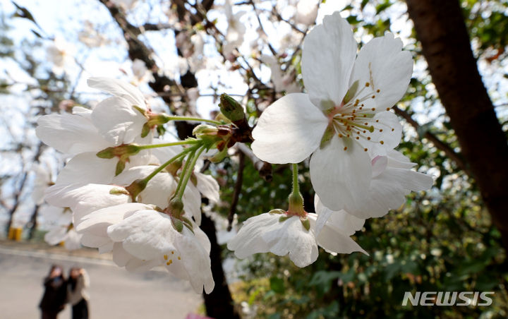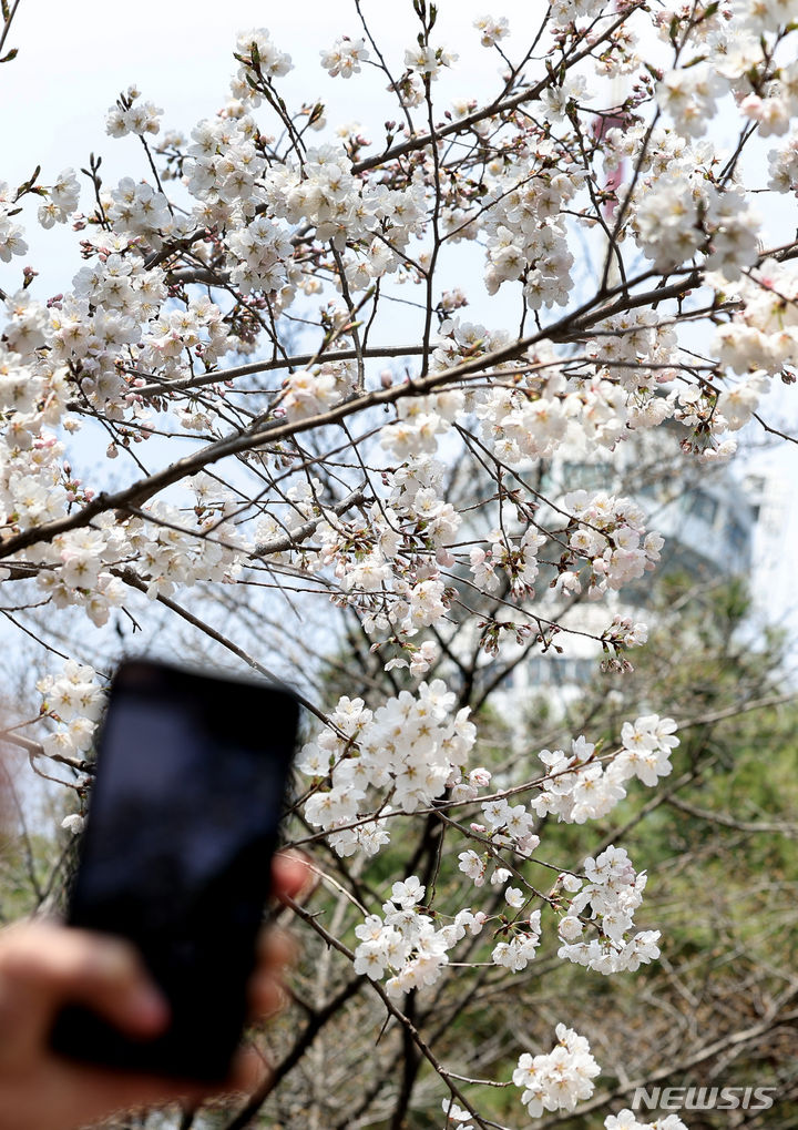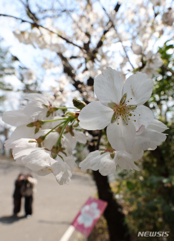 二十四節気の一つ「春分」に当たる20日、大邱市達西区のイーワールドではサクラが大きく開花していた。