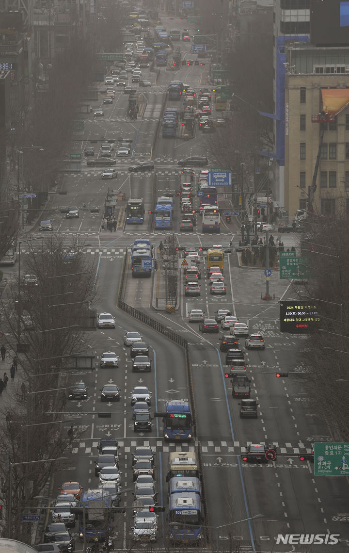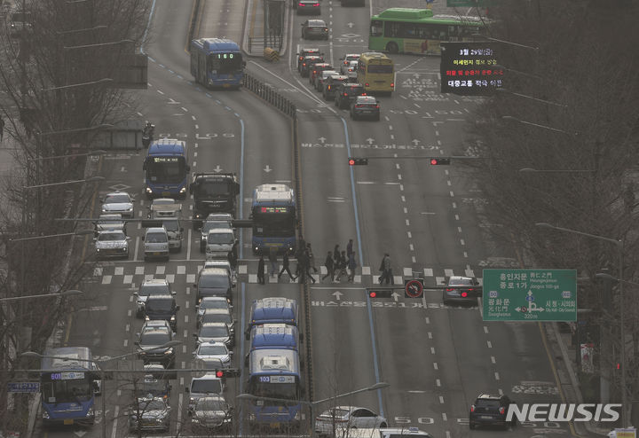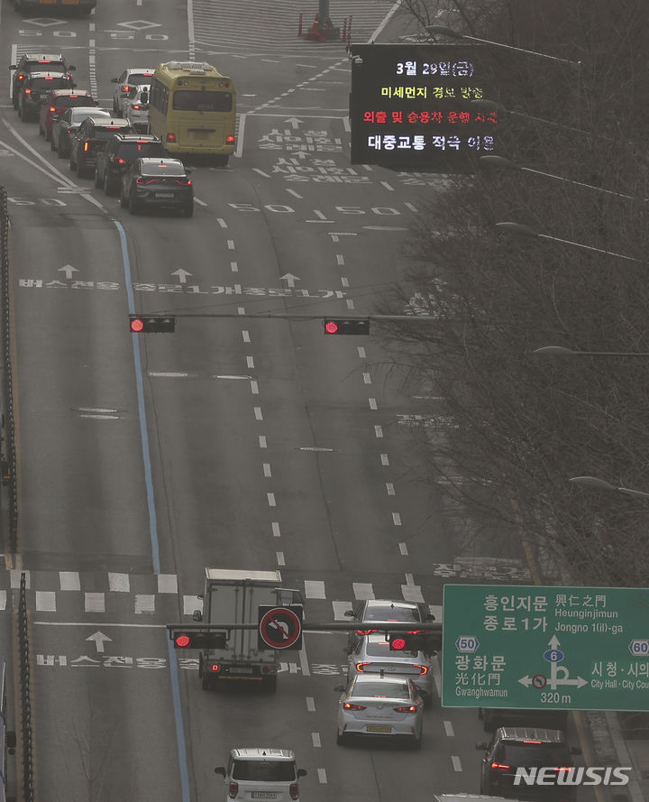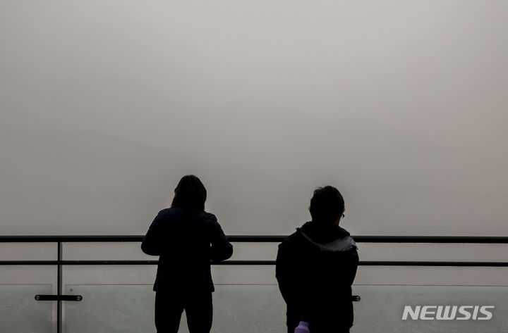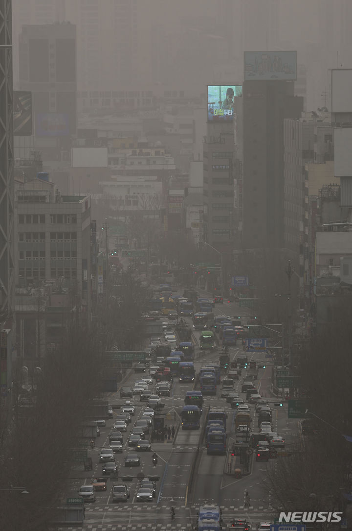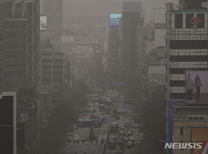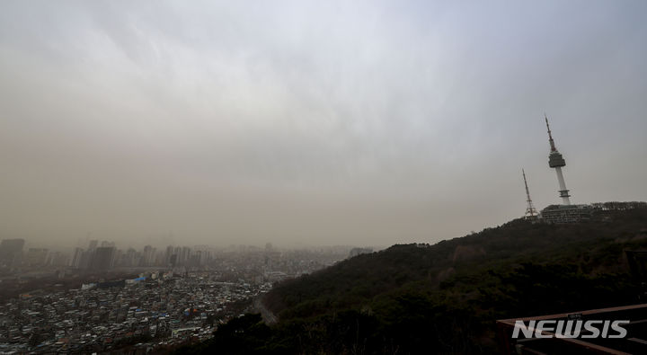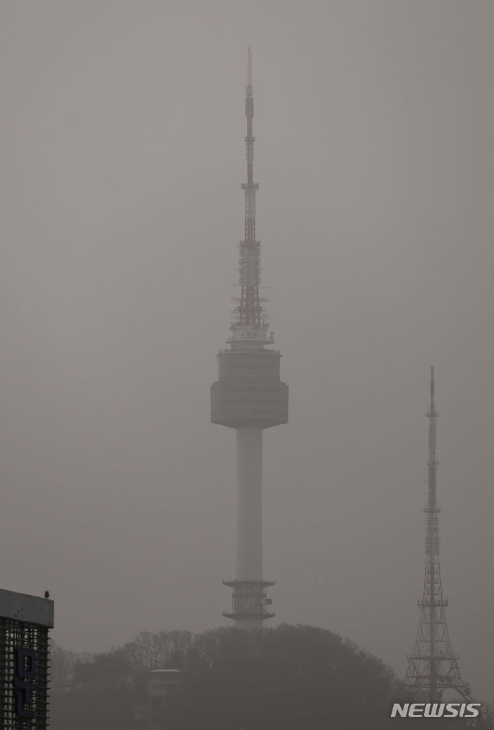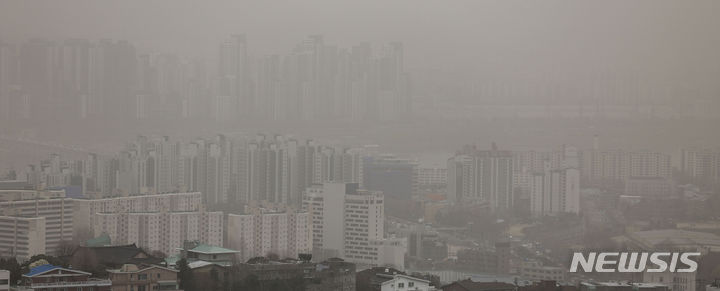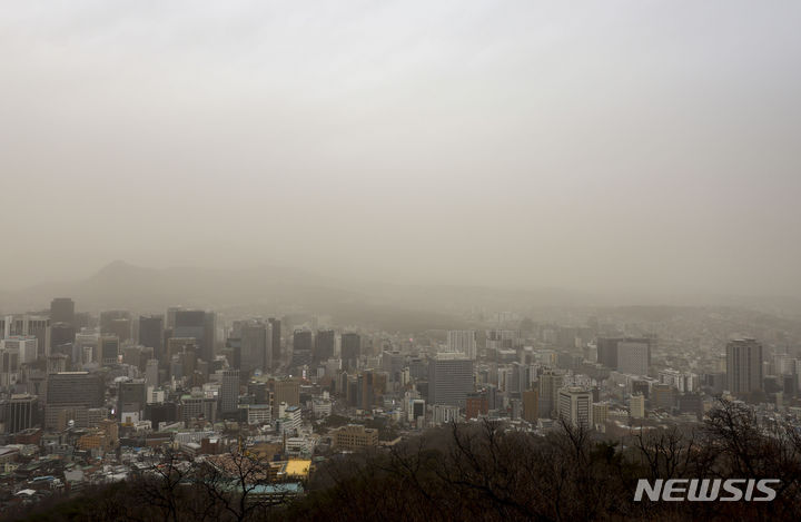 【NEWSIS】韓国のほぼ全域で黄砂と微小粒子状物質(PM2.5)の影響により大気の質が悪化した29日、かすむソウル中心部のビル群。