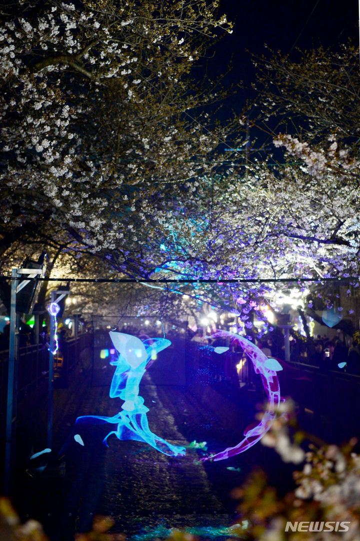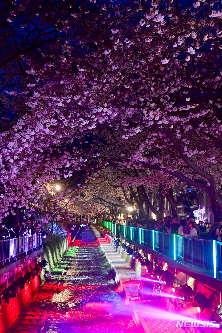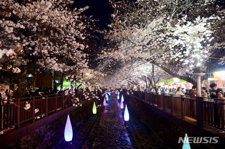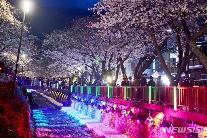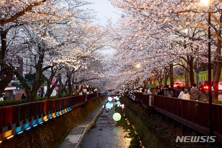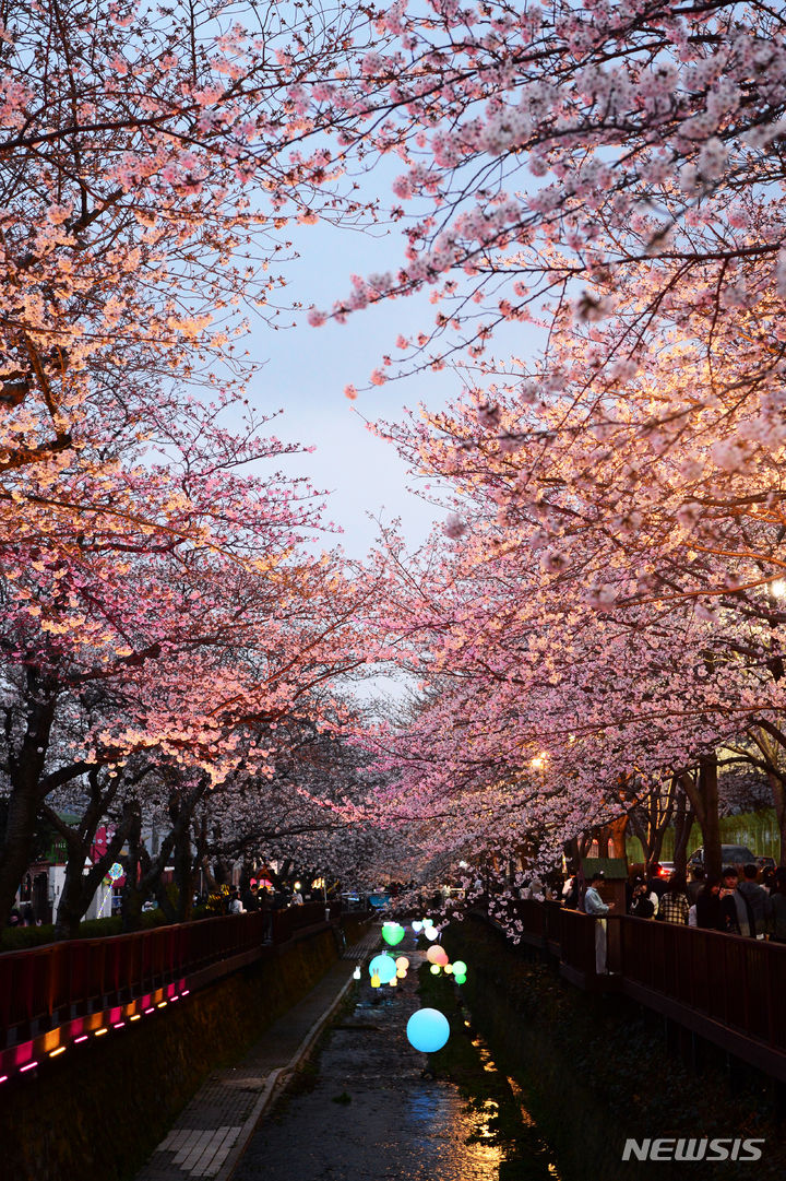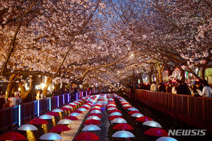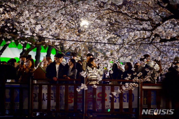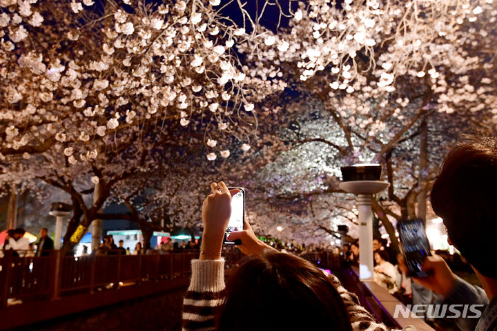 週末の30日午後、鎮海軍港祭が開かれている慶尚南道昌原市鎮海区の餘佐川一帯では、大きく花開いたサクラが観光客や市民を魅了した。鎮海軍港祭は来月1日まで開催されている。