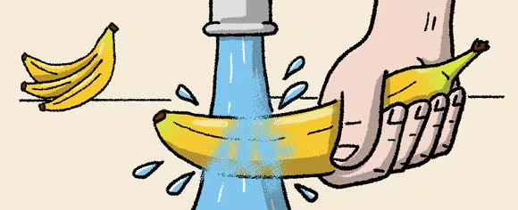 バナナは流水で洗ってから皮をむいて食べよう。皮の表面の残留農薬が口の中に入る恐れがあるからだ。農薬は、特にヘタの部分に多い。