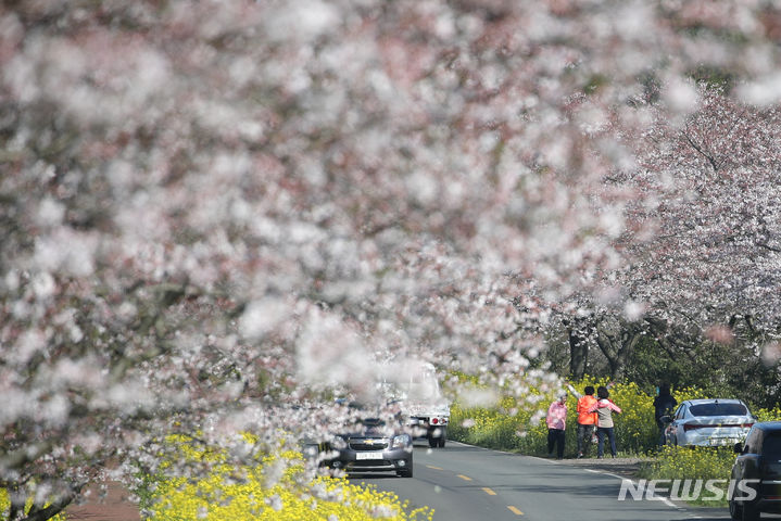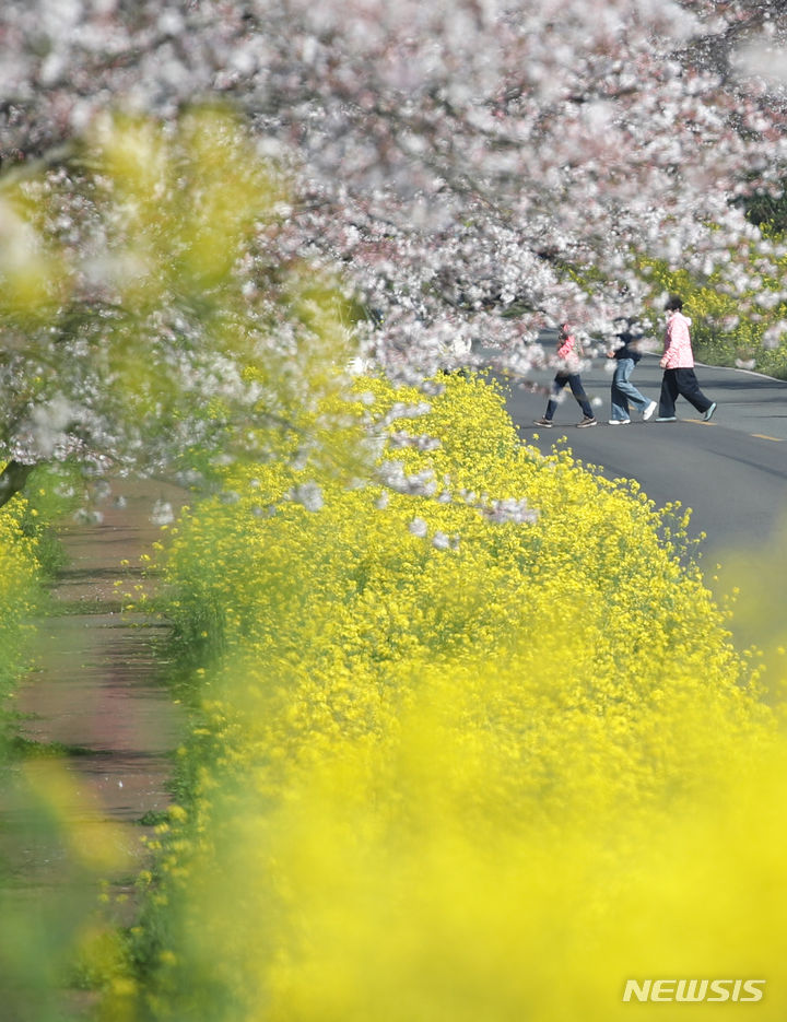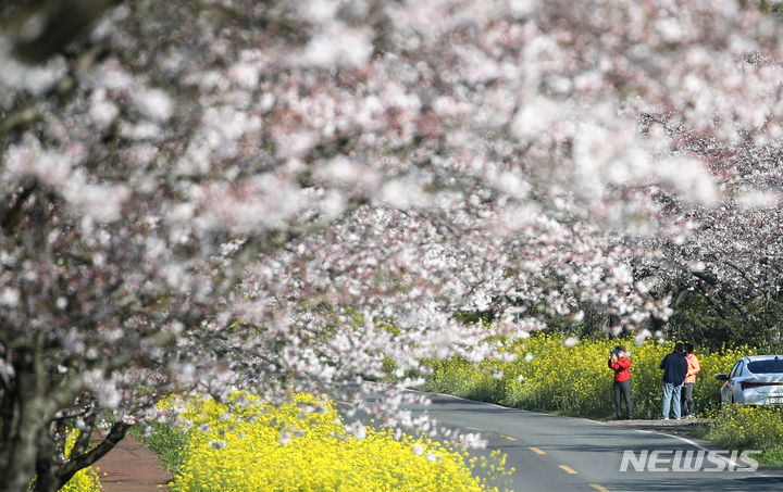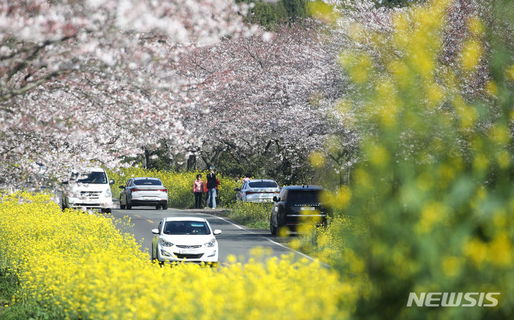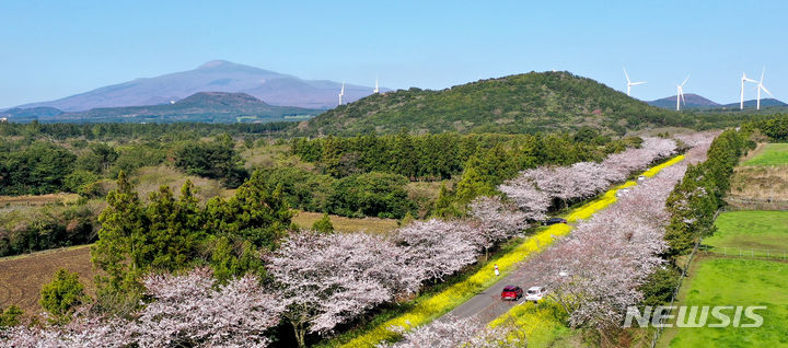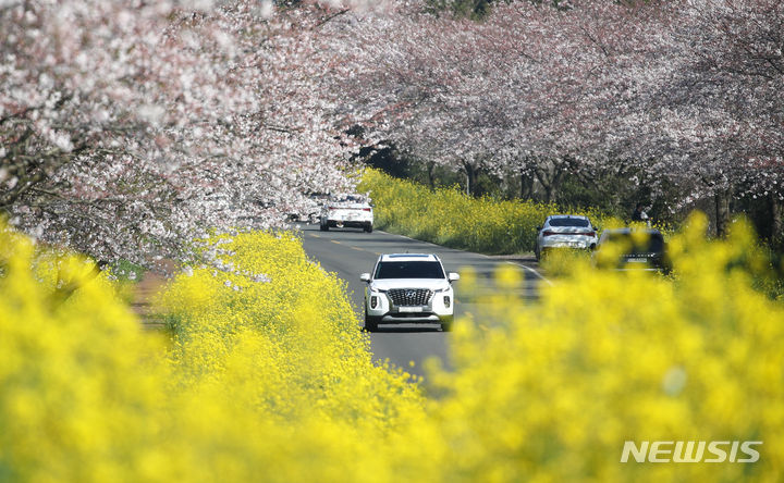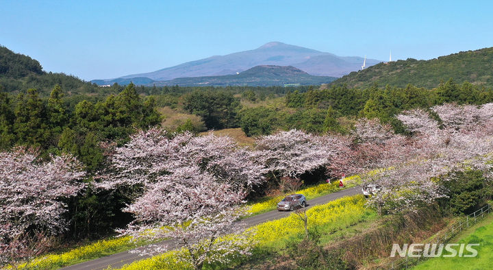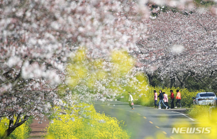 穏やかな陽気となった1日午前、済州道西帰浦市表善面鹿山路では桜と菜の花が咲き乱れ、まさに春本番といった雰囲気を漂わせていた。