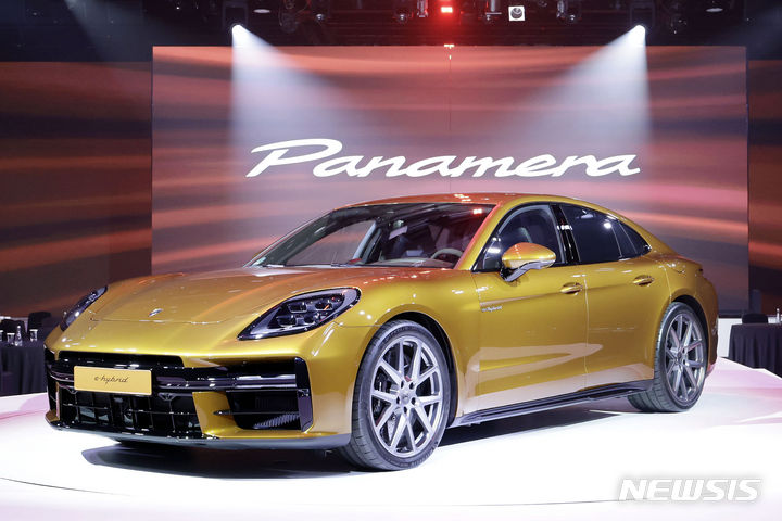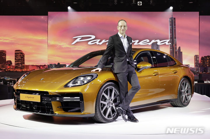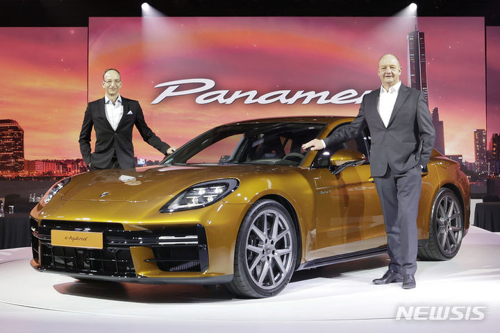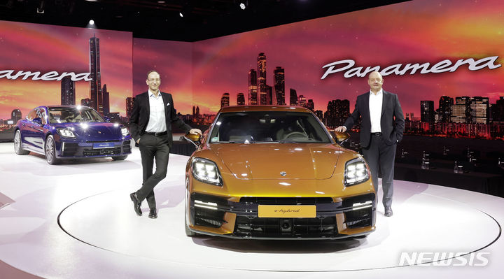 【NEWSIS】2日、ソウル市中区の新羅ホテルで、ポルシェ・コリアが高級スポーツセダンの新型「パナメーラ」韓国公式発売イベントを開催した。写真はホルガー・ゲアマン・ポルシェ・コリア代表=写真右=と、トーマス・フリームス・ポルシェAGパナメーラ製品ライン総括社長。