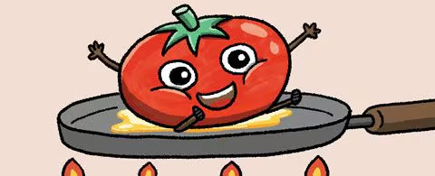 トマトは油で炒めて食べた方が健康に良い。栄養素が体に吸収されやすくなる。トマトは血管の健康やがんの予防に役立つと言われている。