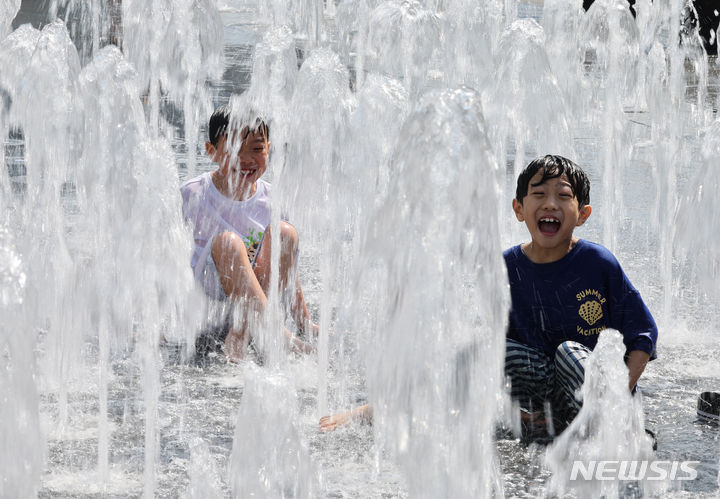 最高気温29℃…光化門の噴水で水遊びをする子どもたち /ソウル
