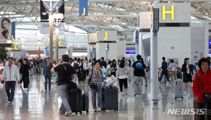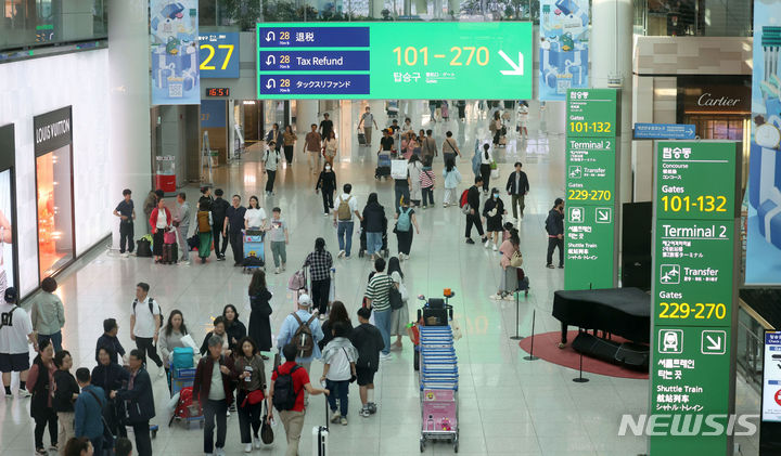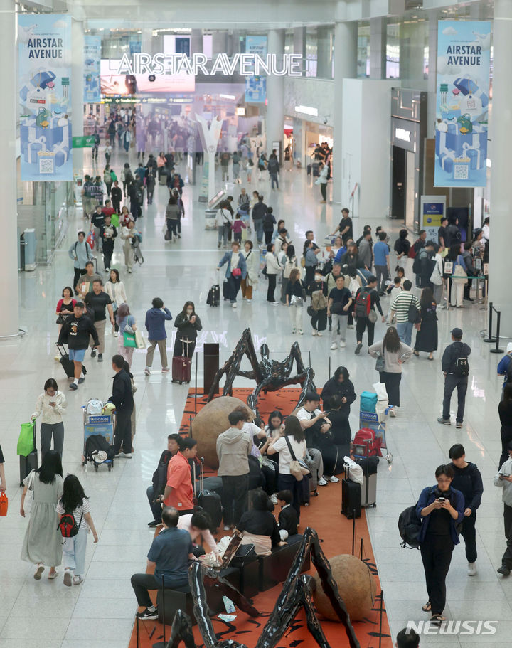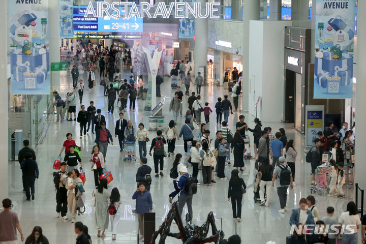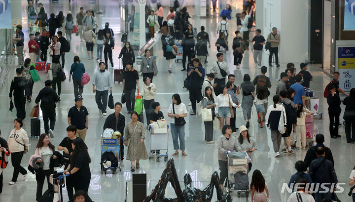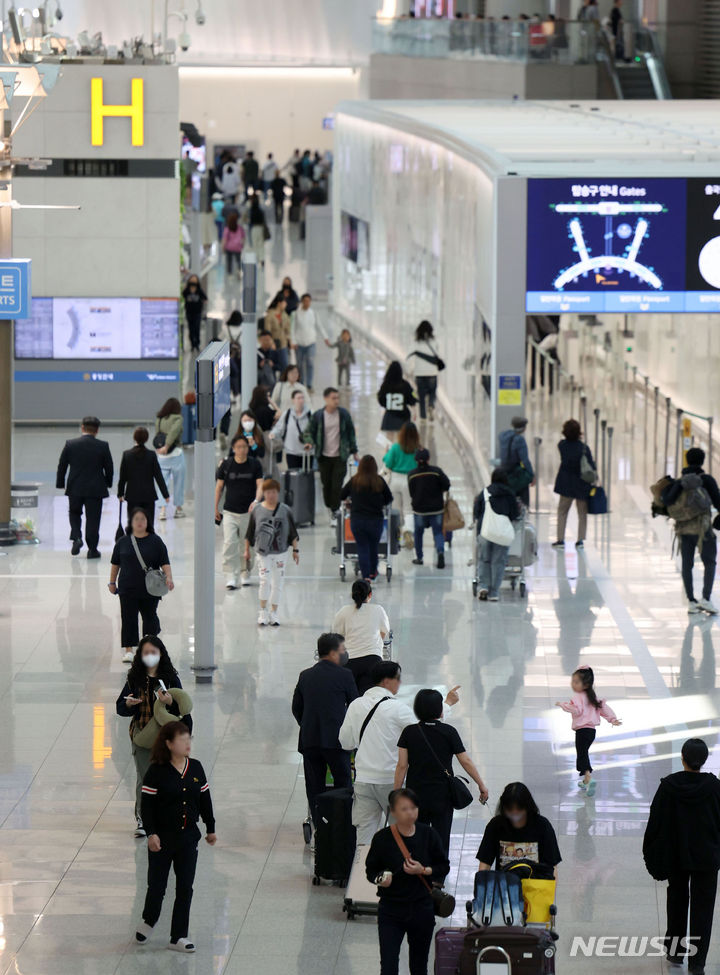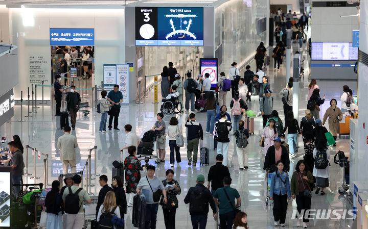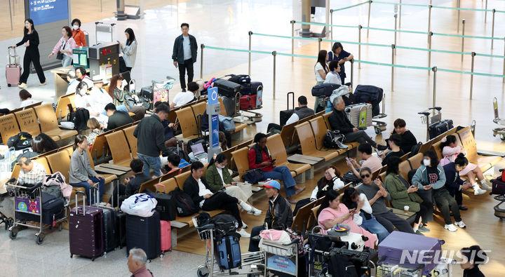 メーデーとこどもの日の連休を含む六日間に仁川空港を利用する海外旅行客の数は112万人を超える見込みだ。仁川空港公社によると、六日間の一日平均旅客数はおよそ18万人で、乗客が最も多い日は最終日の6日になると予測されている。写真は1日、仁川国際空港出国場で出国を待っている旅行客の様子。