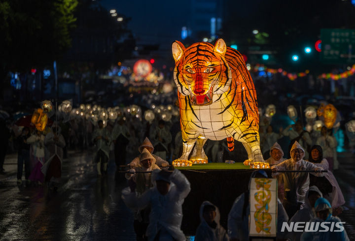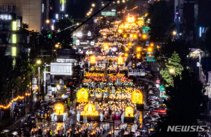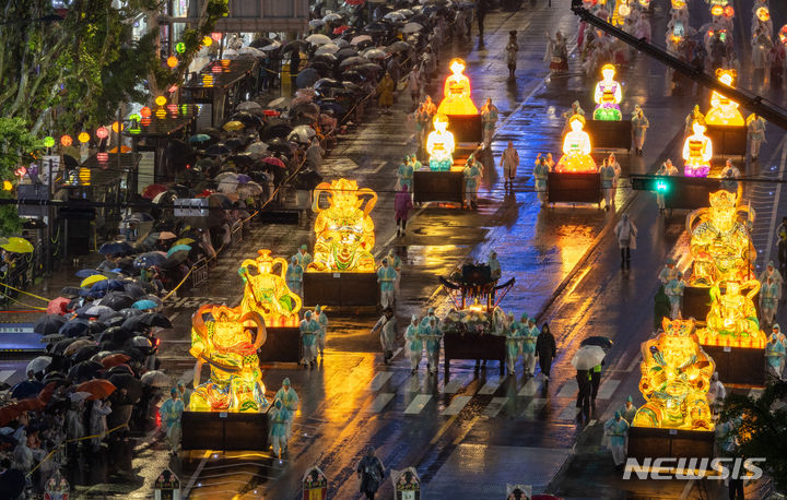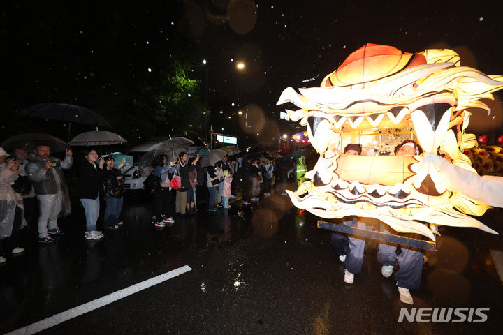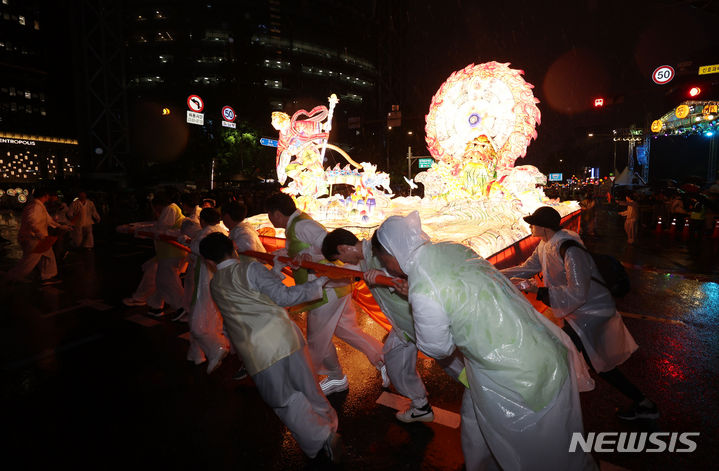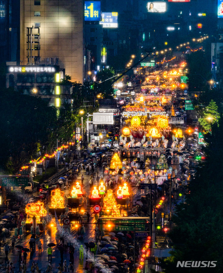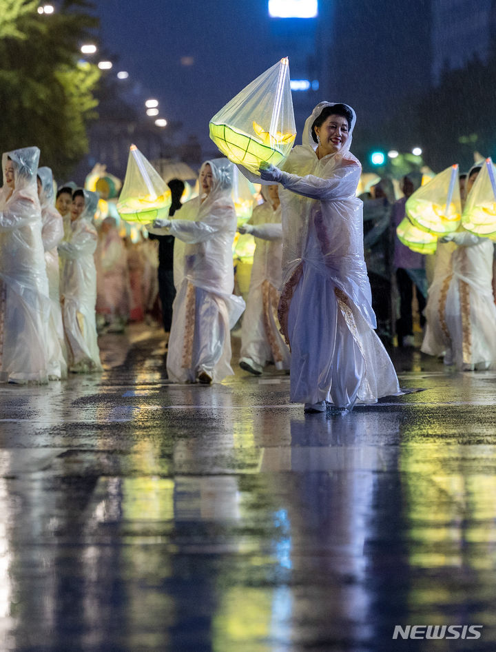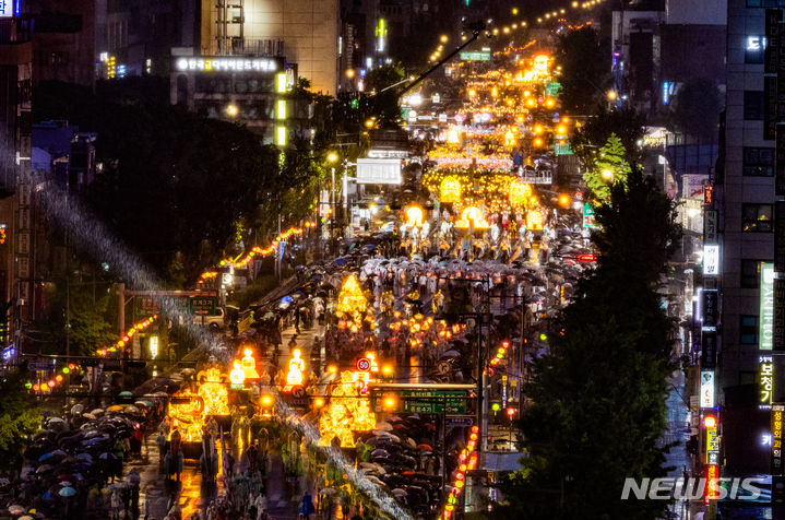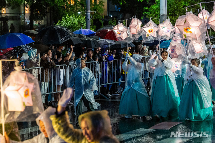 釈迦生誕日(旧暦4月8日。今年は5月15日)が近付く11日午後、雨天の中、ソウルの鍾路一帯では燃灯パレードが行われた。