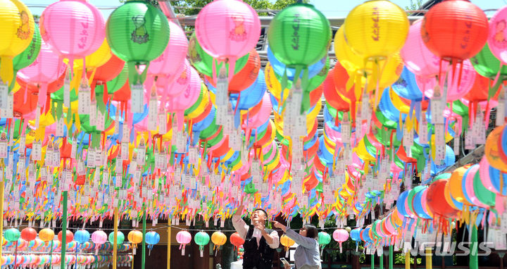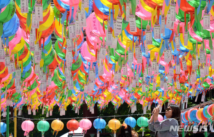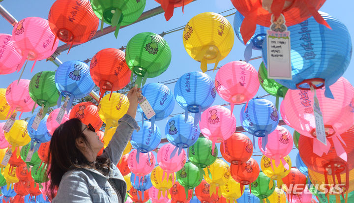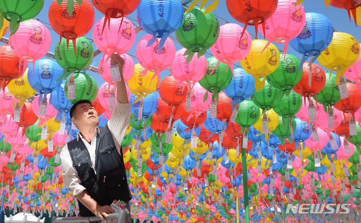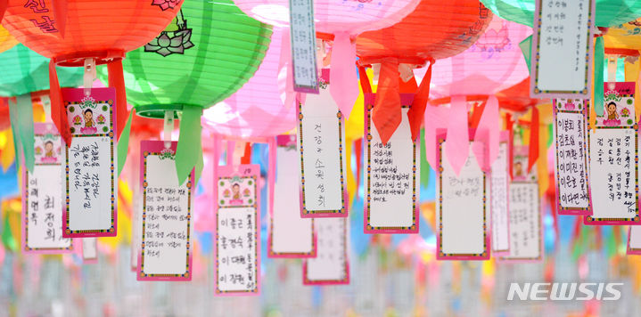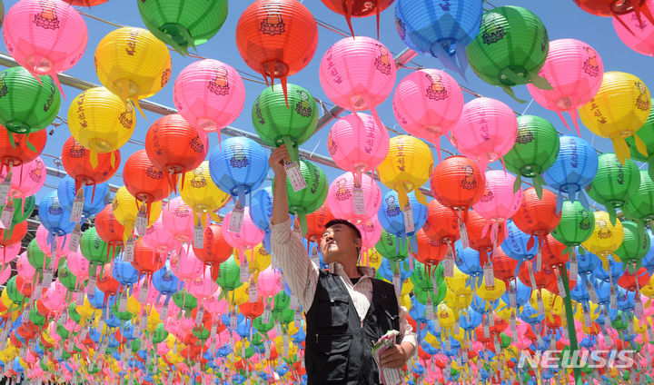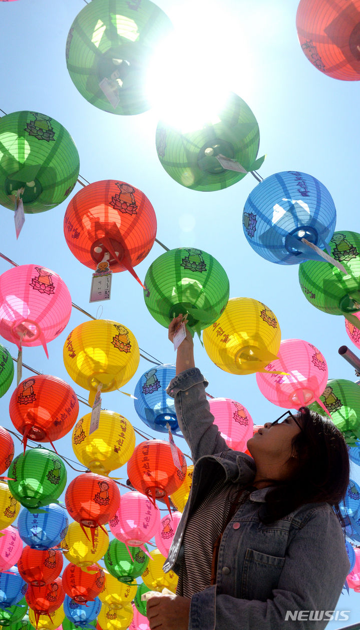 釈迦生誕日(旧暦4月8日。今年は5月15日)まであと二日と迫った13日、全羅北道完州郡の松広寺では、信徒が願い事を書いた紙を燃灯に付けていた。